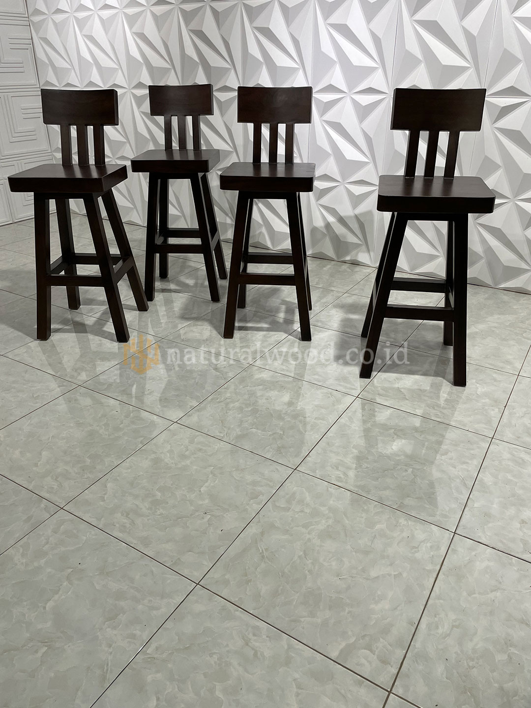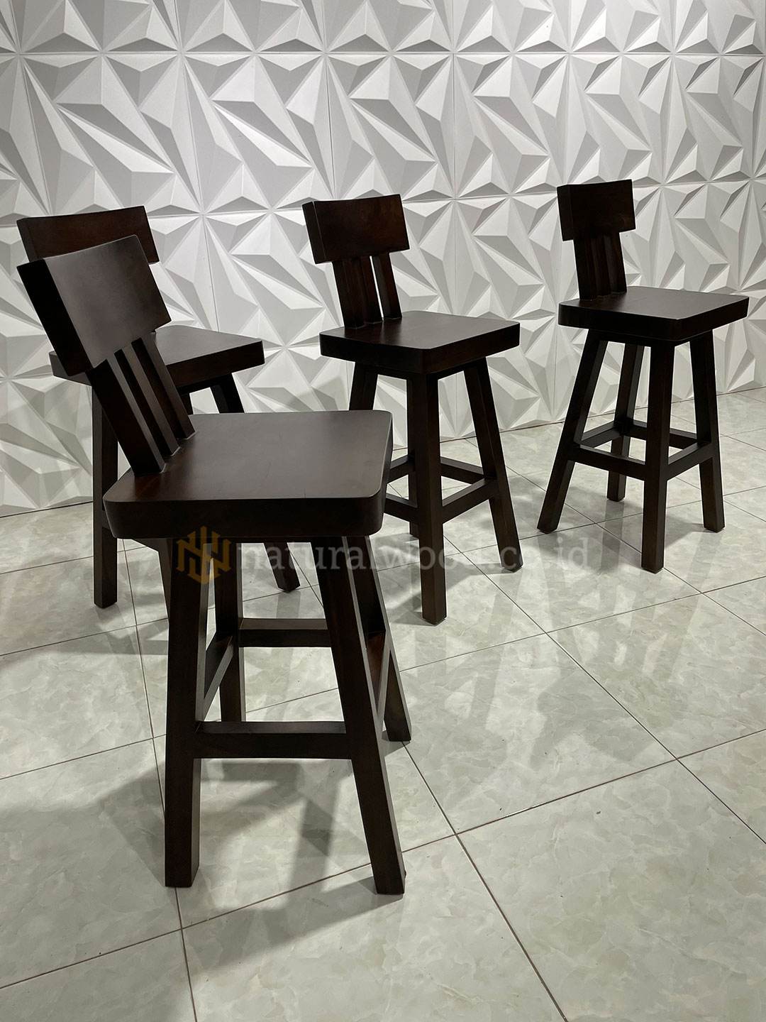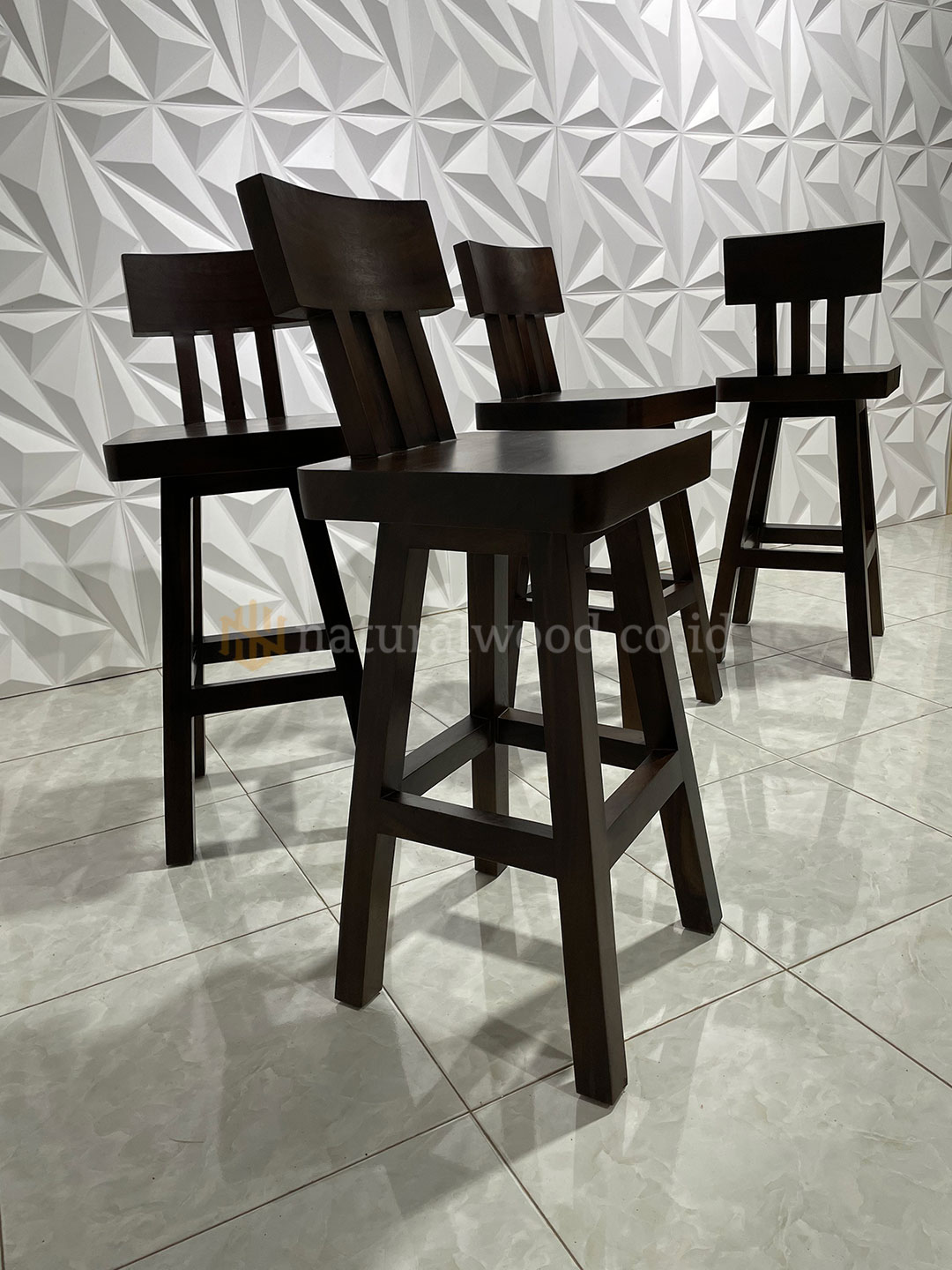 Keunggulan utama kursi bar ini terletak pada material kayu trembesi solid yang dikenal sangat kuat, tahan lama, dan memiliki karakter serat kayu yang unik. Struktur kaki kursi dibuat kokoh dengan keseimbangan sempurna sehingga nyaman digunakan dalam jangka waktu lama. Finishing halus dengan warna natural atau dark brown membuatnya mudah dipadukan dengan berbagai konsep interior.