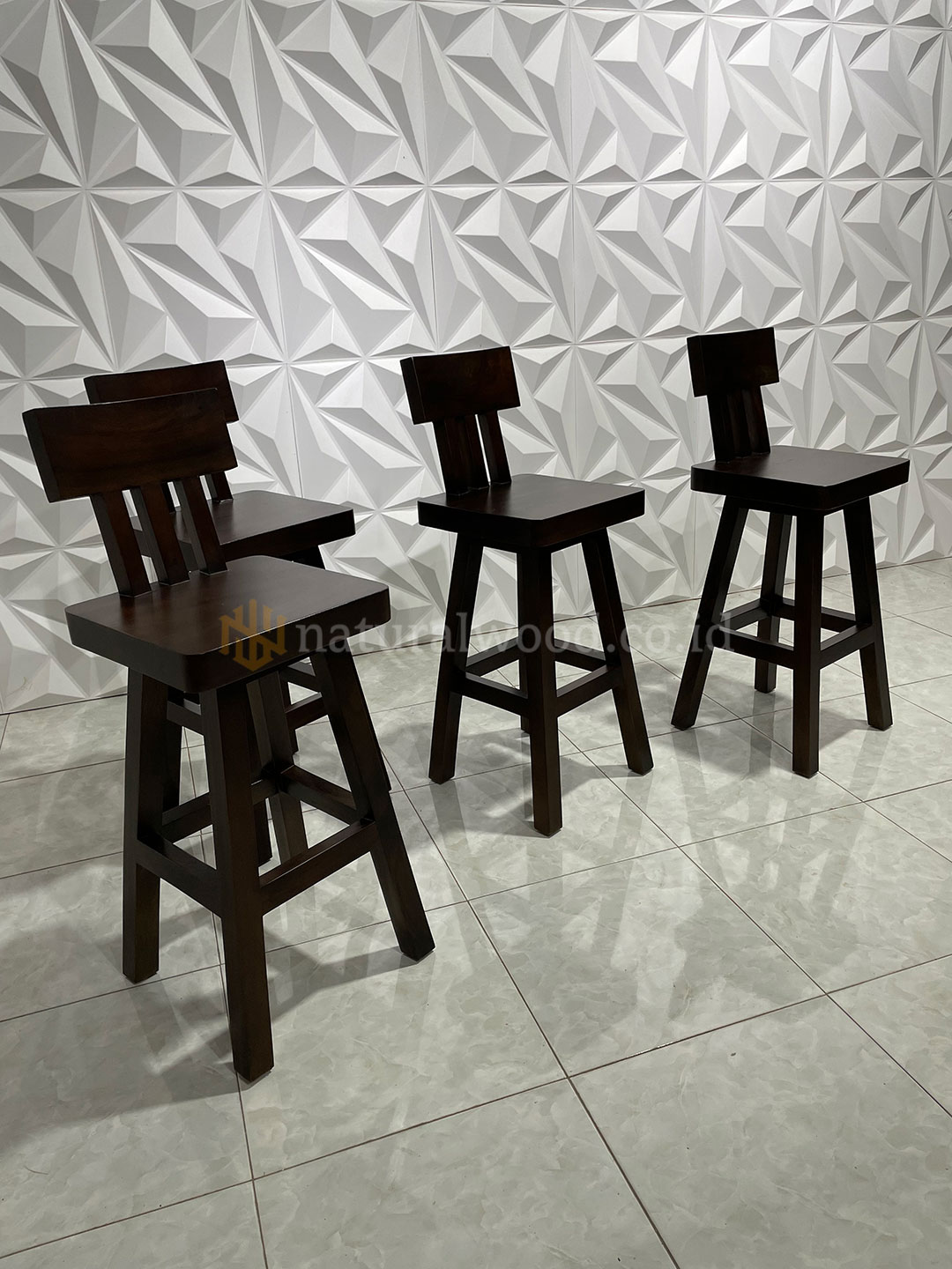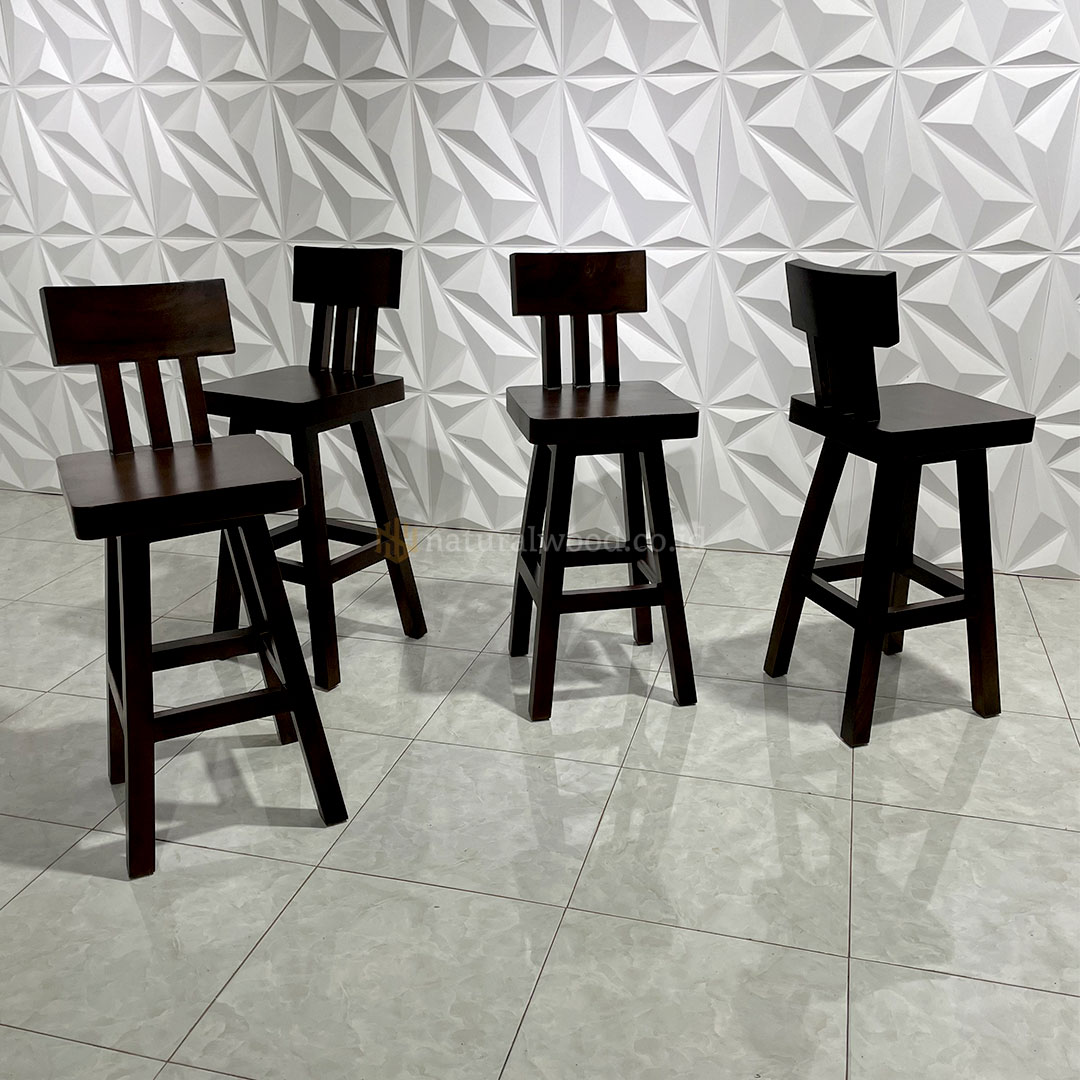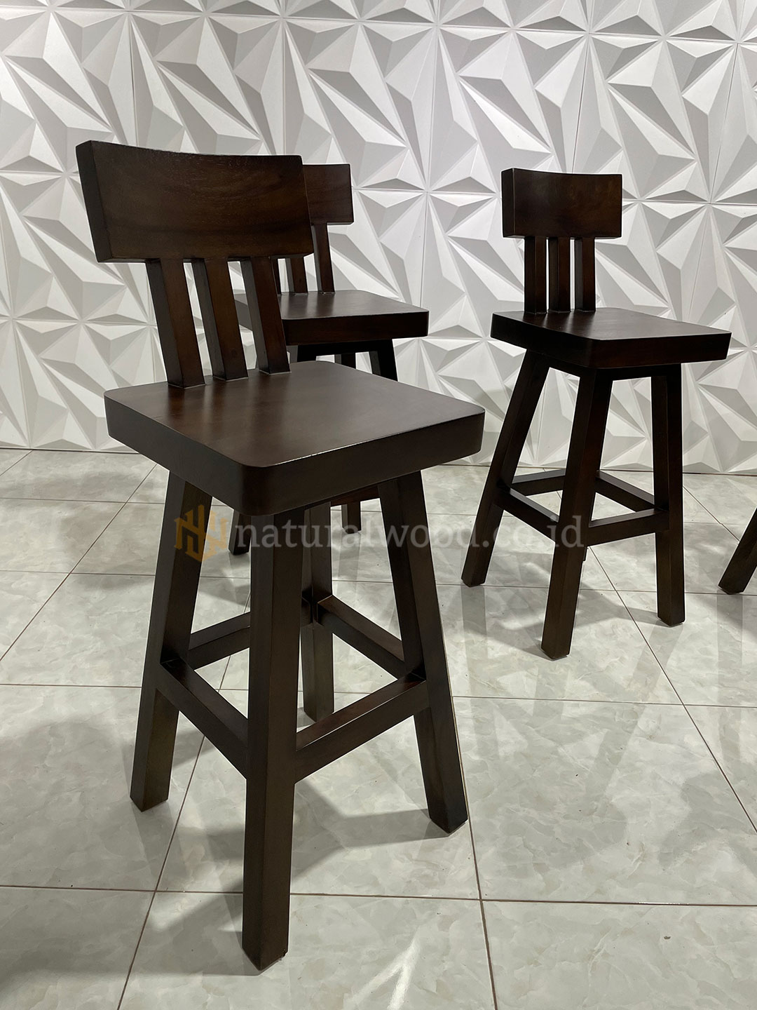 Keunggulan utama kursi bar ini terletak pada material kayu trembesi solid yang dikenal sangat kuat, tahan lama, dan memiliki karakter serat kayu yang unik. Struktur kaki kursi dibuat kokoh dengan keseimbangan sempurna sehingga nyaman digunakan dalam jangka waktu lama. Finishing halus dengan warna natural atau dark brown membuatnya mudah dipadukan dengan berbagai konsep interior.