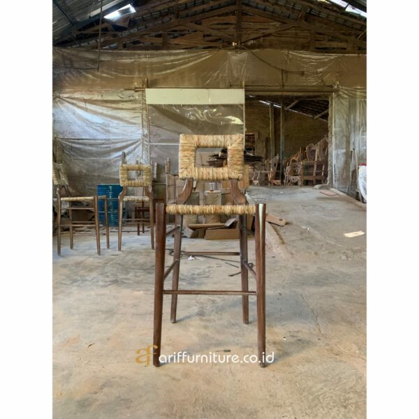 Dengan adanya kursi bar rotan terbaru yang terbuat dari kayu jati, ruang tamu atau area bar di rumah Anda akan terasa lebih hidup. Kursi ini tidak hanya berfungsi sebagai tempat duduk yang nyaman, tetapi juga menjadi elemen dekoratif yang menarik perhatian. Kecantikan alamiah dari rotan dan kemewahan kayu jati dalam satu furnitur, menciptakan harmoni yang memikat bagi penggemar desain interior yang apik dan bernuansa alami. Dengan demikian, kursi bar rotan terbaru ini merupakan pilihan yang tepat untuk melengkapi kehangatan dan kenyamanan Cafe atau Rumah Anda.