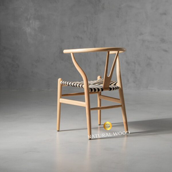 Salah satu fitur yang membuat kursi makan ini menonjol adalah dudukan tali lum custom yang dipadukan dengan desain tradisional. Tali lum yang kuat dan tahan lama memberikan kontras yang menarik dengan kursi model tanduk, menciptakan estetika modern yang menawan.
