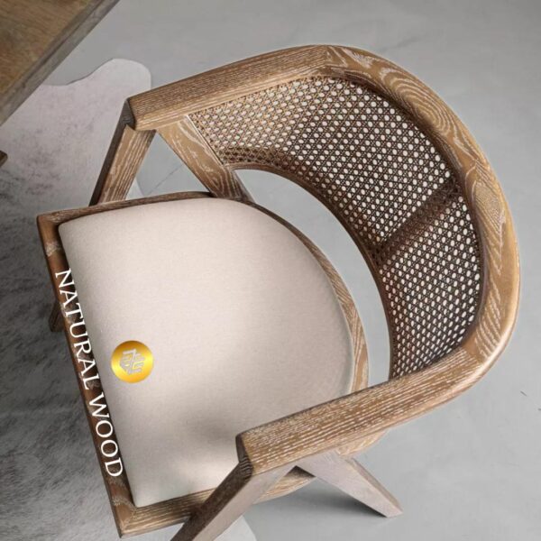 Menawarkan pengalaman duduk yang nyaman serta penampilan yang menarik secara visual. Material utama dari kursi ini adalah kayu jati, yang tidak hanya kuat namun juga memberikan kesan kehangatan alami yang sulit ditandingi oleh material lainnya. Kombinasi ini memberikan nuansa klasik yang timeless, cocok untuk berbagai tema dekorasi interior, baik itu tradisional maupun kontemporer.