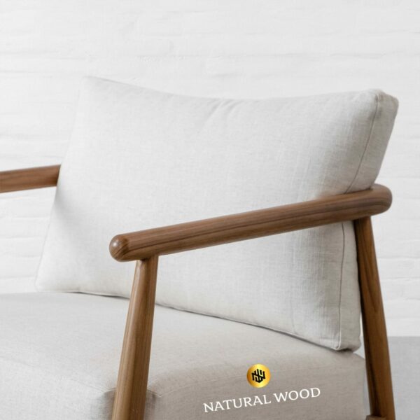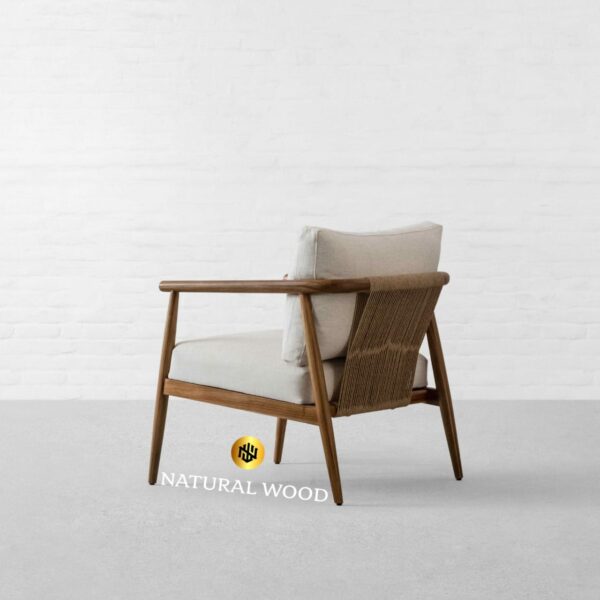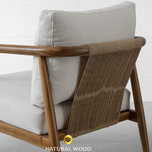 Kursi ini menggabungkan keanggunan klasik dari kayu jati dengan sentuhan modern dari variasi tali Lum pada dudukan jok sandarannya. Material kayu jati memberikan nuansa yang hangat dan mewah, sementara tali Lum menambahkan sentuhan kontemporer yang unik. Kombinasi ini menciptakan kursi yang memancarkan kesan elegan namun tetap menyegarkan dan modern.