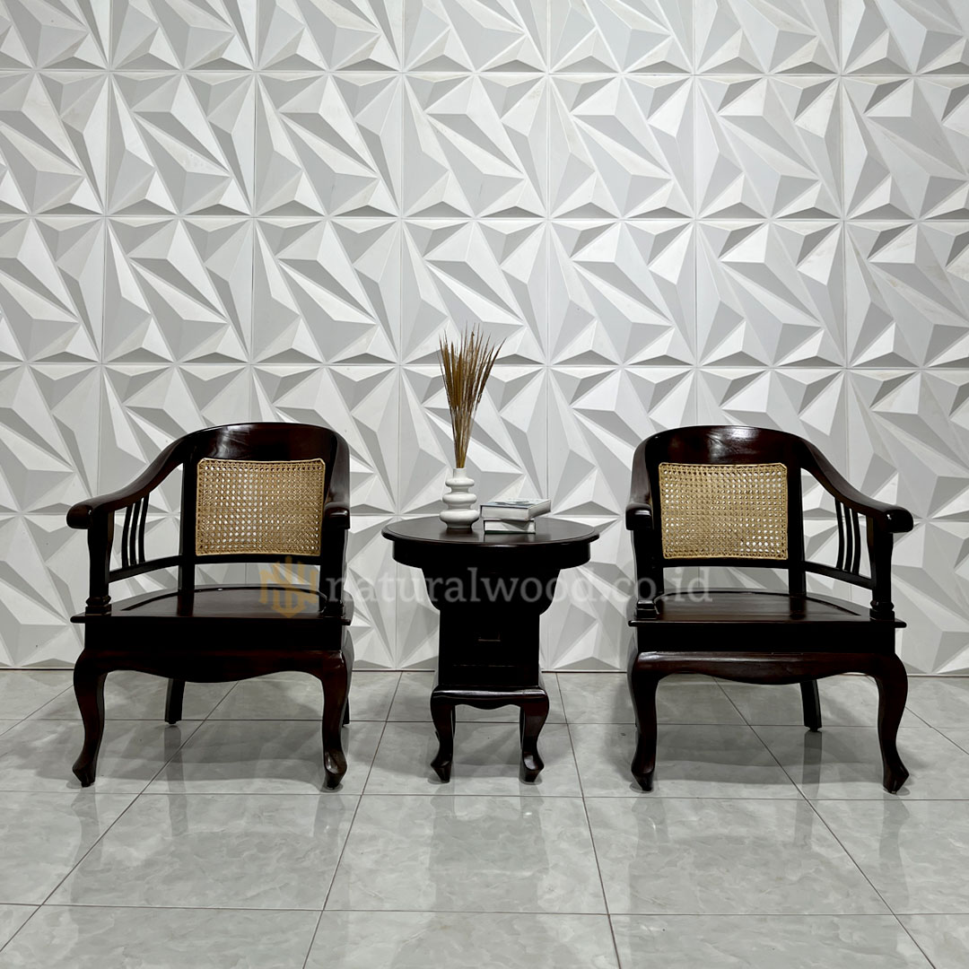 Hadirkan nuansa akulturasi budaya yang elegan di ruang santai Anda dengan Set Kursi Teras Betawi Kayu Jati Klasik Minimalis . Set kursi ini merupakan interpretasi modern dari desain ikonik Betawi, yang dihadirkan dengan kualitas terbaik dan keahlian tangan dari para pengrajin Furniture Jepara .