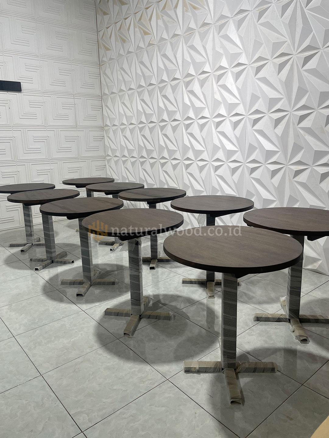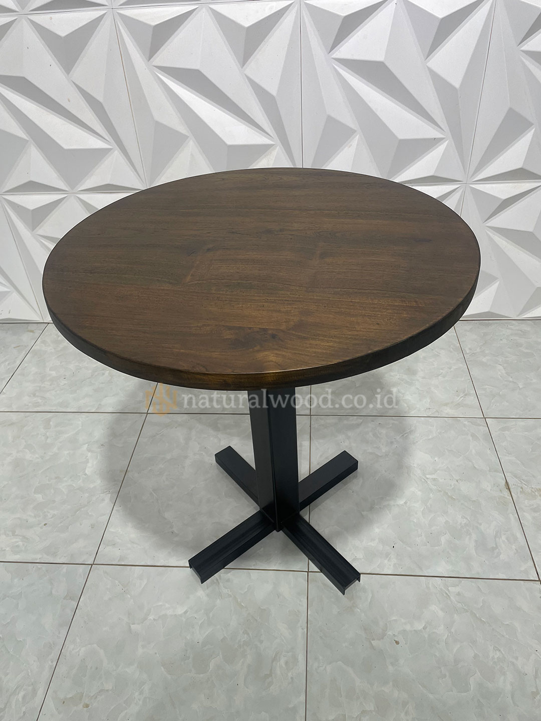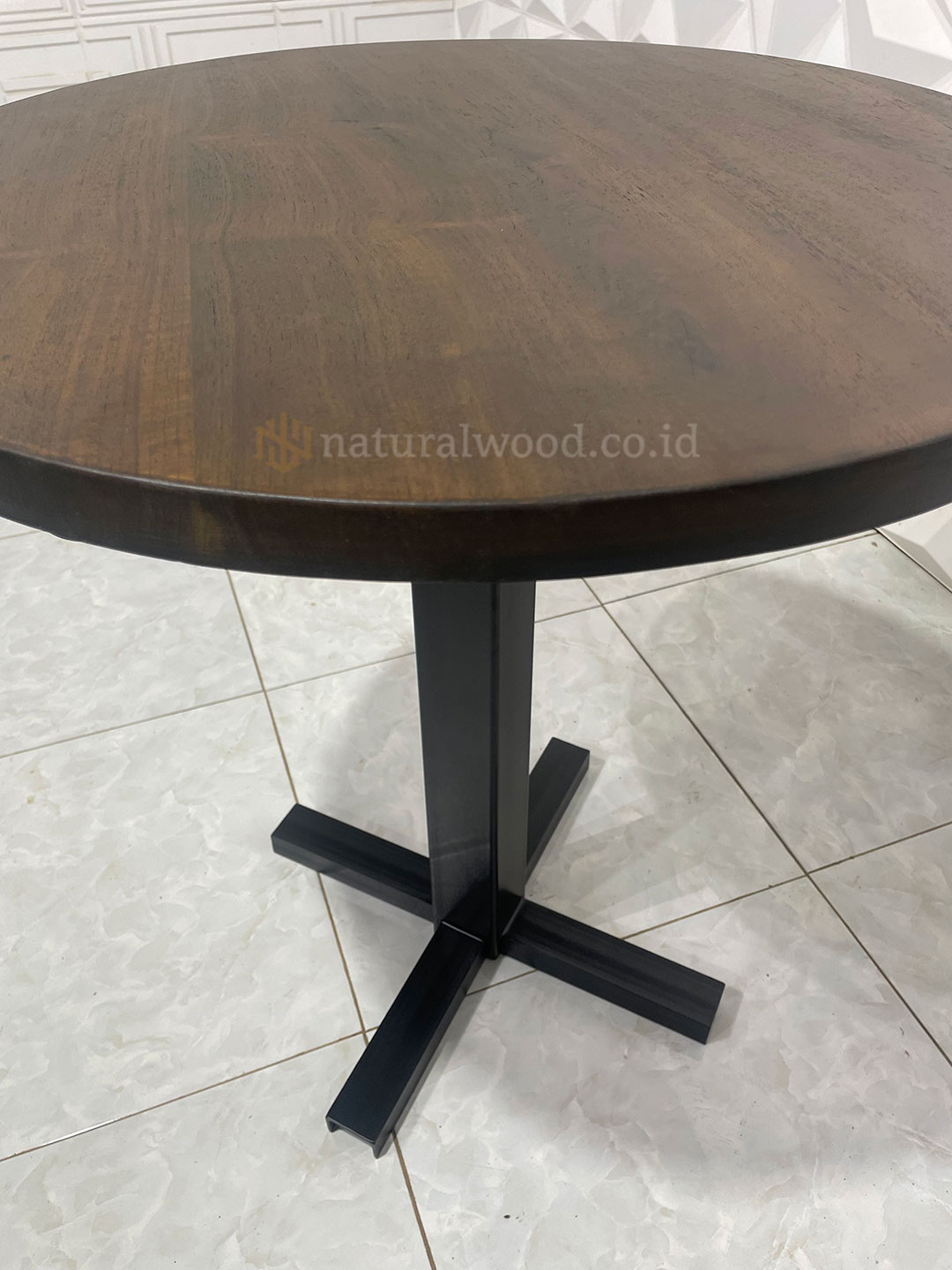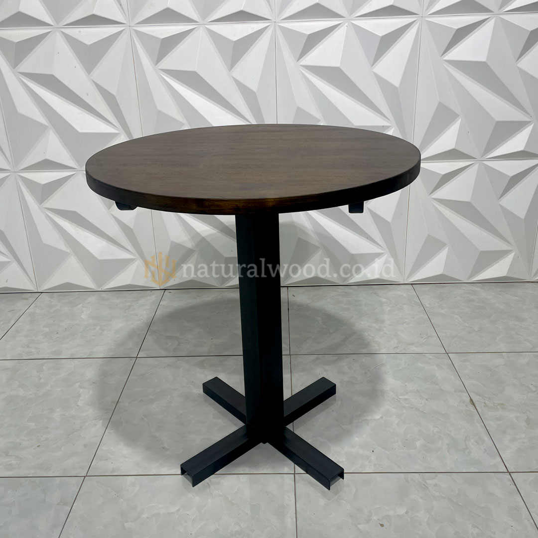 Meja Cafe Bundar Kayu Jati Kaki Besi Powder Coating