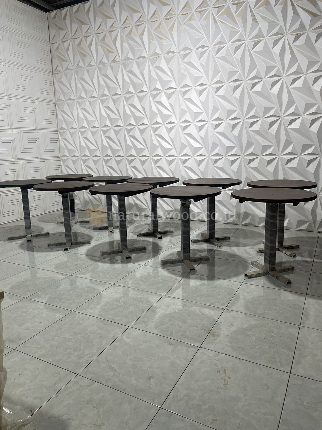 Bagian kaki meja menggunakan besi berkualitas tinggi dengan finishing powder coating , yang berfungsi melindungi dari karat, goresan, serta meningkatkan daya tahan untuk penggunaan jangka panjang. Kombinasi kayu jati alami dan kaki besi bergaya industrial menjadikan meja cafe ini tampak kokoh, modern, dan elegan. Desainnya minimalis namun tetap berkelas, sangat cocok untuk konsep cafe indoor maupun outdoor semi-tertutup.