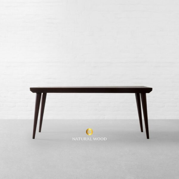 Desain minimalis persegi panjang menambah kesan modern dan bersih pada ruang makan. Dengan garis-garis yang sederhana dan proporsi yang seimbang, meja ini menyatu dengan mudah dalam berbagai tema dekorasi. Kesederhanaannya memungkinkan meja ini untuk menjadi sorotan tanpa mendominasi ruang, memberikan ruang bagi elemen-elemen lain dalam desain interior.