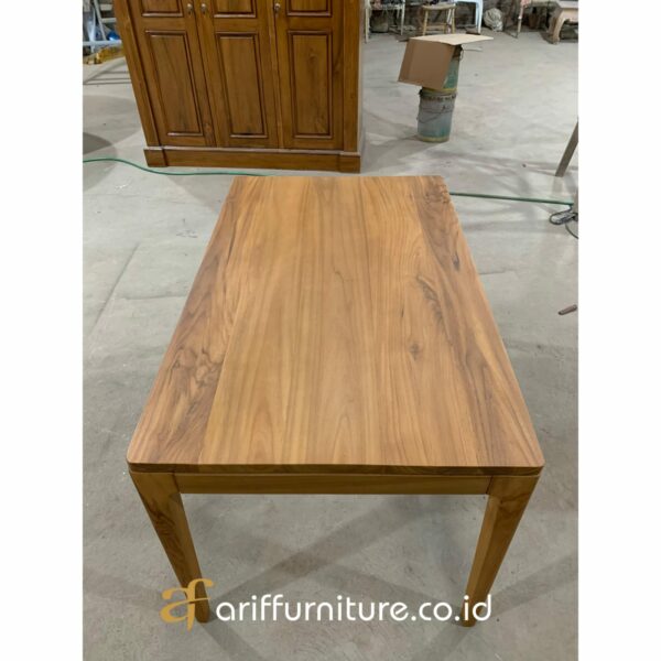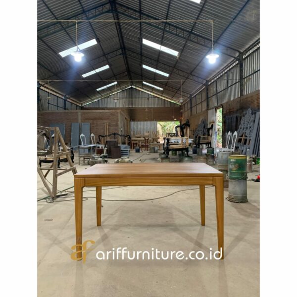 Daya tarik utama dari meja makan cafe minimalis Jati solid terletak pada kemampuannya untuk menyatukan fungsionalitas dengan keindahan alami. Meja makan ini tidak hanya cocok untuk ruang makan rumah pribadi, tetapi juga cocok untuk berbagai kafe dan restoran bergaya modern. Kehadirannya memberikan nuansa hangat dan ramah, menciptakan atmosfer yang menyenangkan dan mengundang tamu untuk menikmati hidangan dengan kenyamanan dan kehangatan.