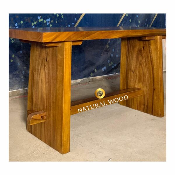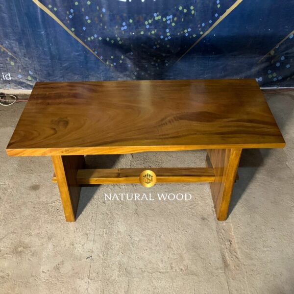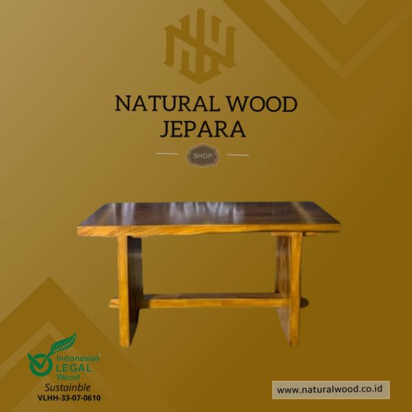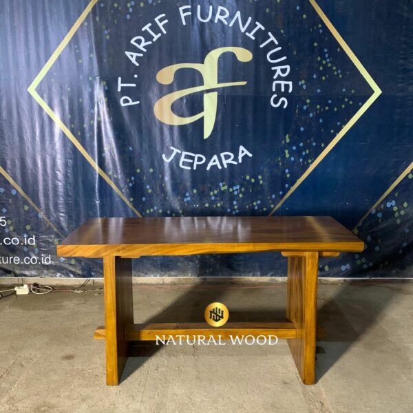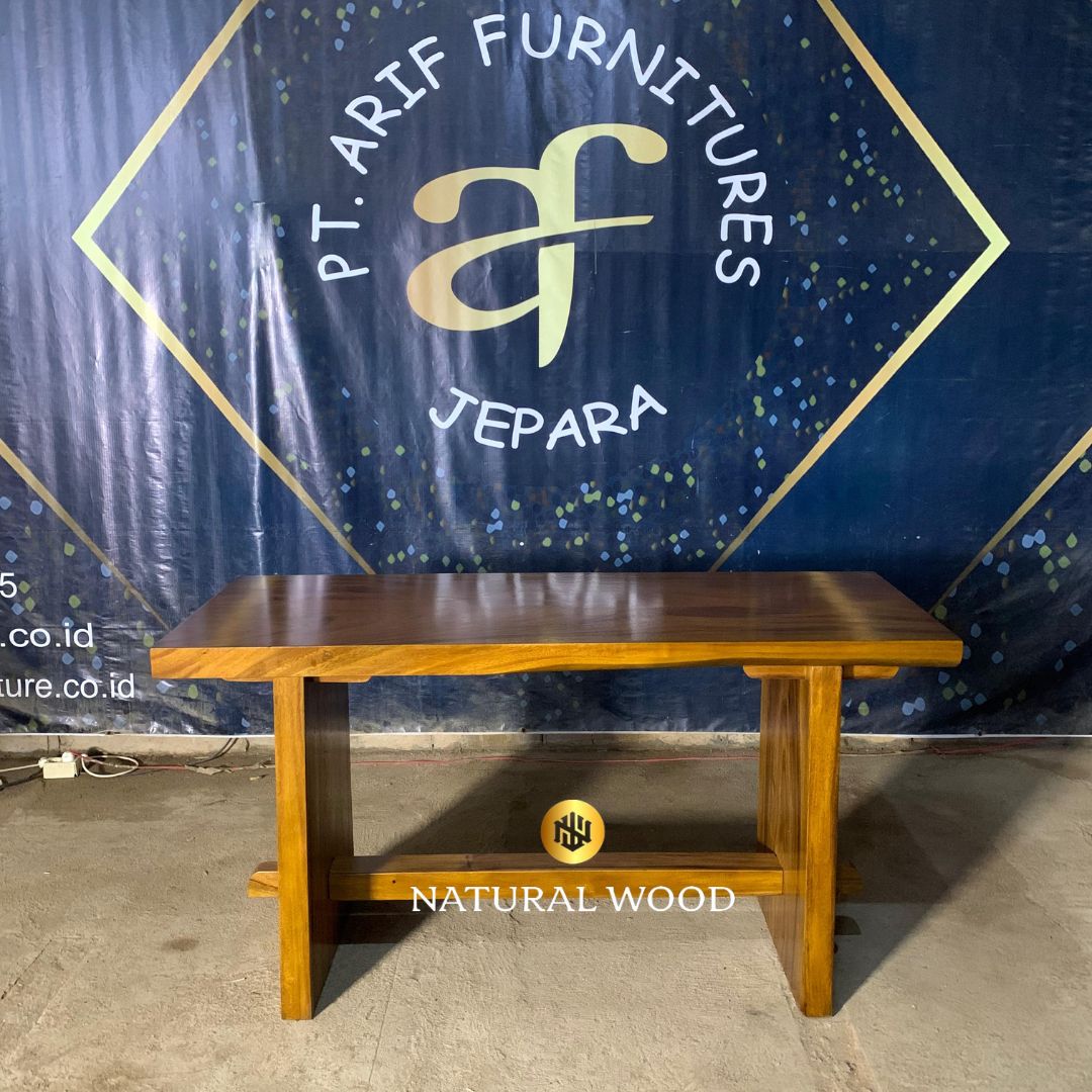Keindahan alam yang tersirat dalam serat kayu dan desain yang sederhana namun elegan membuat meja ini menjadi pilihan yang sempurna bagi mereka yang menghargai keindahan alam dan estetika minimalis.