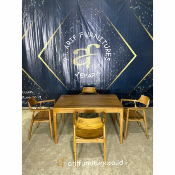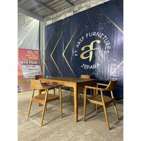 Kursi cafe dan meja makan panjang minimalis menawarkan gaya yang bersih, fungsional, dan elegan. Dengan ciri khasnya yang simpel namun menarik, perabotan ini mampu memberikan sentuhan keanggunan pada ruang makan atau area bersantai di rumah atau bahkan di kafe dan restoran. Desainnya yang bersih dan ringan memungkinkan ruang terlihat lebih luas dan teratur, menciptakan suasana yang menyenangkan bagi penghuni rumah atau pelanggan kafe.