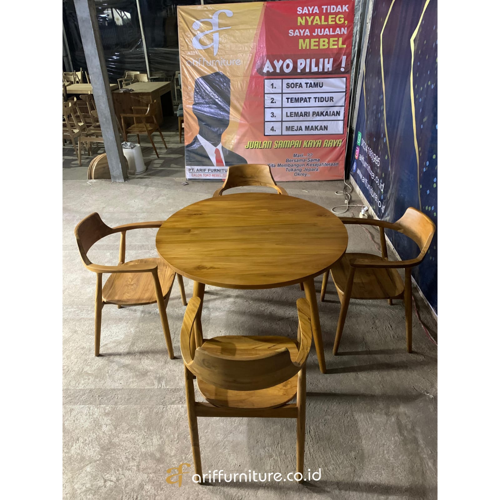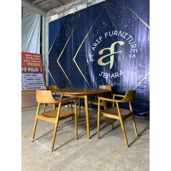 - Ukuran : Dimension Meja : Diameter 110 x Tinggi 75 cm -Dimension Kursi : Panjang 55 x Lebar 45 x Tinggi 80 cm