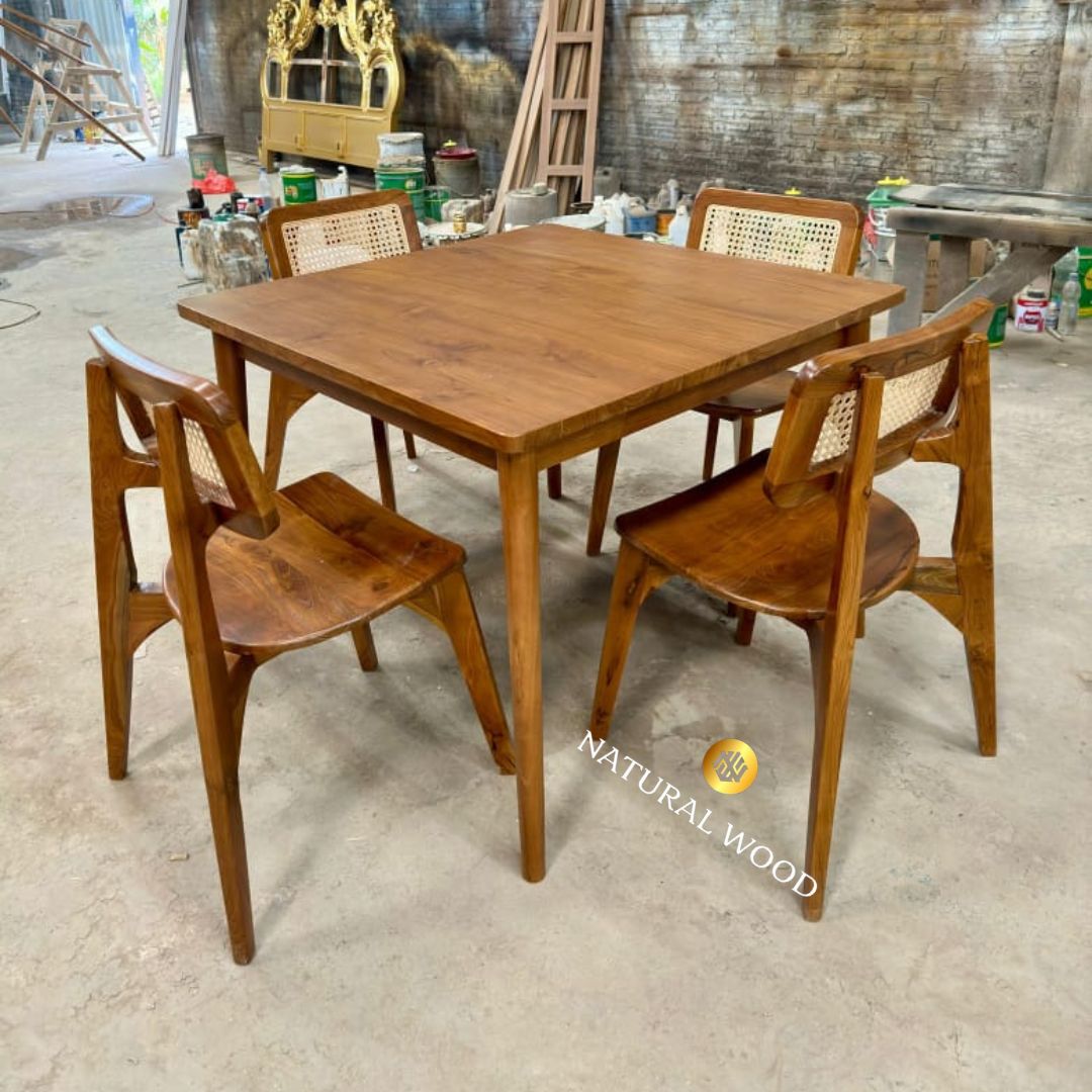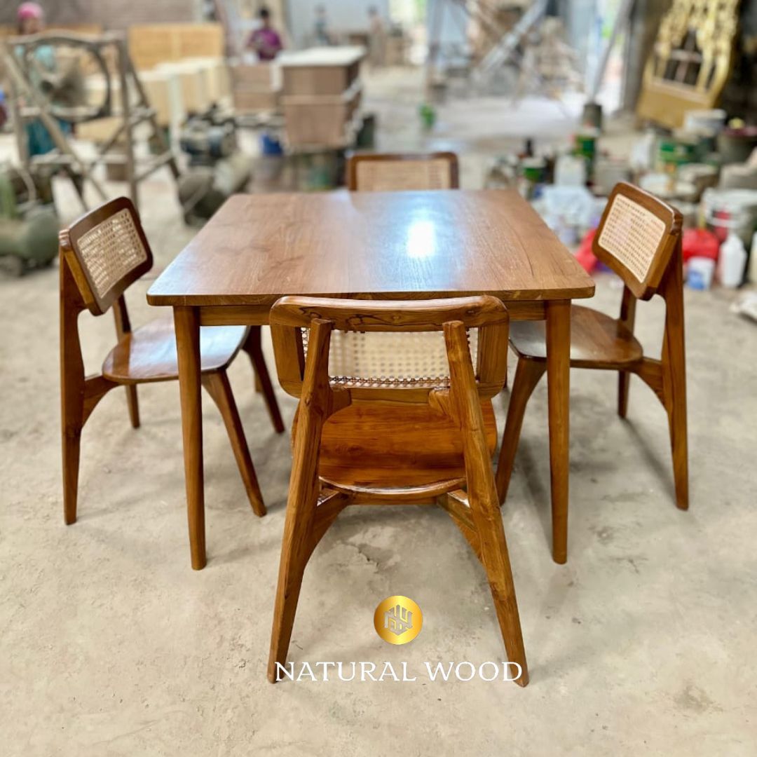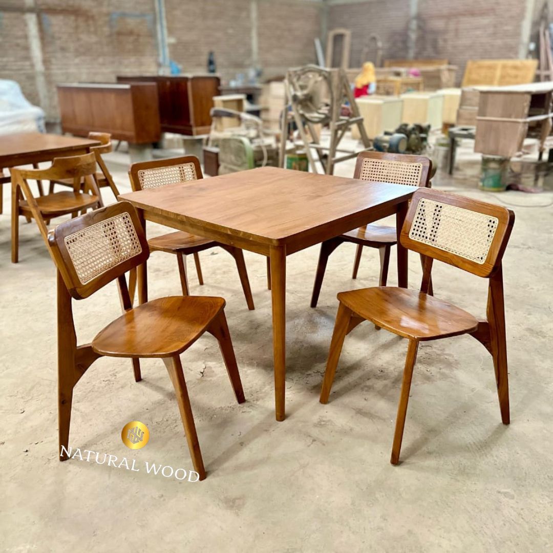 Set Meja Kursi Cafe Rotan Minimalis dengan Kayu Jati Kombinasi Klasik dan Modern