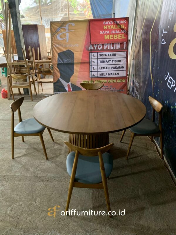 Dengan memilih set meja kursi makan kayu jati jok busa sandaran bulan sabit, Anda tidak hanya mendapatkan perabotan berkualitas tinggi tetapi juga menghadirkan keindahan dan kehangatan dalam ruang makan Anda. Keberlanjutan dan ketahanan tinggi dari kayu jati menjadikan investasi ini tidak hanya untuk sekarang tetapi juga untuk masa depan. Segera ciptakan pengalaman makan yang istimewa dengan perabotan yang tidak hanya berfungsi tetapi juga memancarkan keindahan dan gaya.