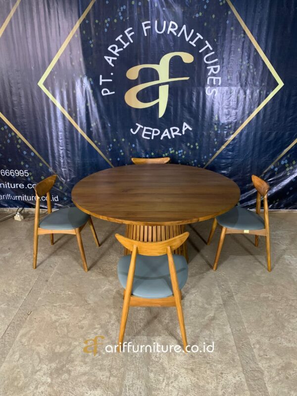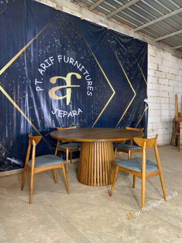 Menikmati Keindahan dan Kualitas dengan Set Meja Kursi Makan Kayu Jati Jok Busa Sandaran Bulan Sabit