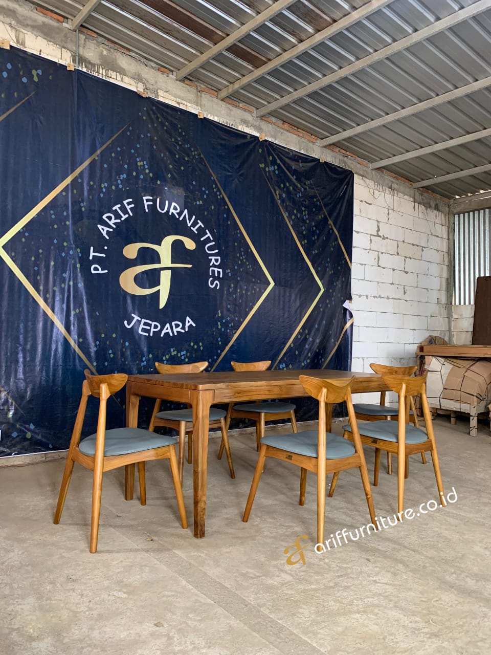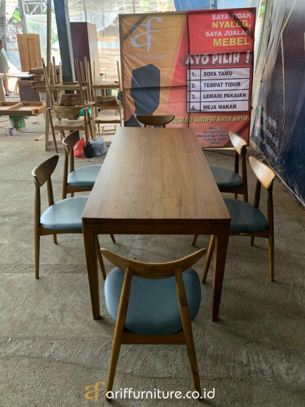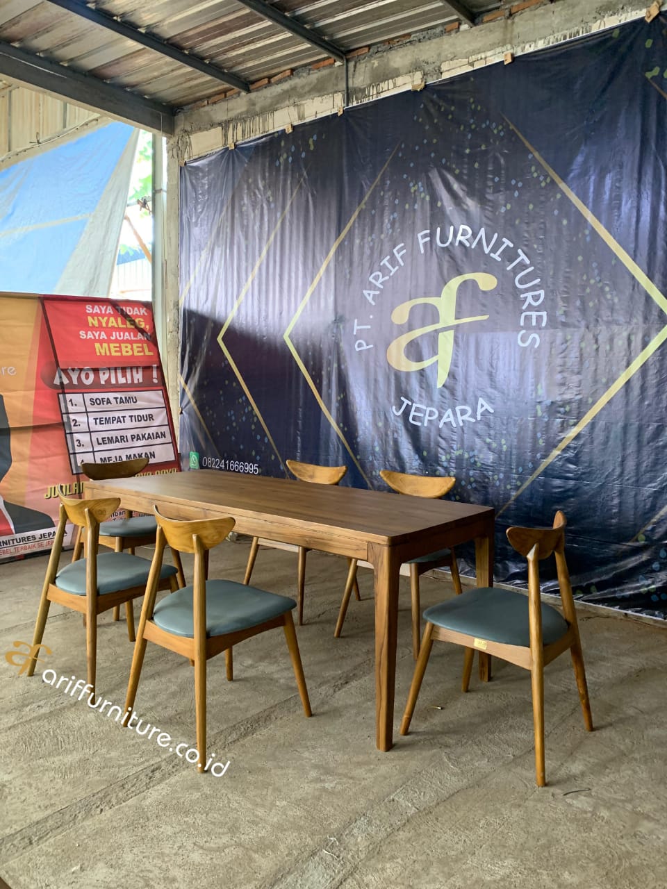Meja Makan Cafe 6 Kursi Elegan dan Minimalis dengan Sentuhan Kayu Jati