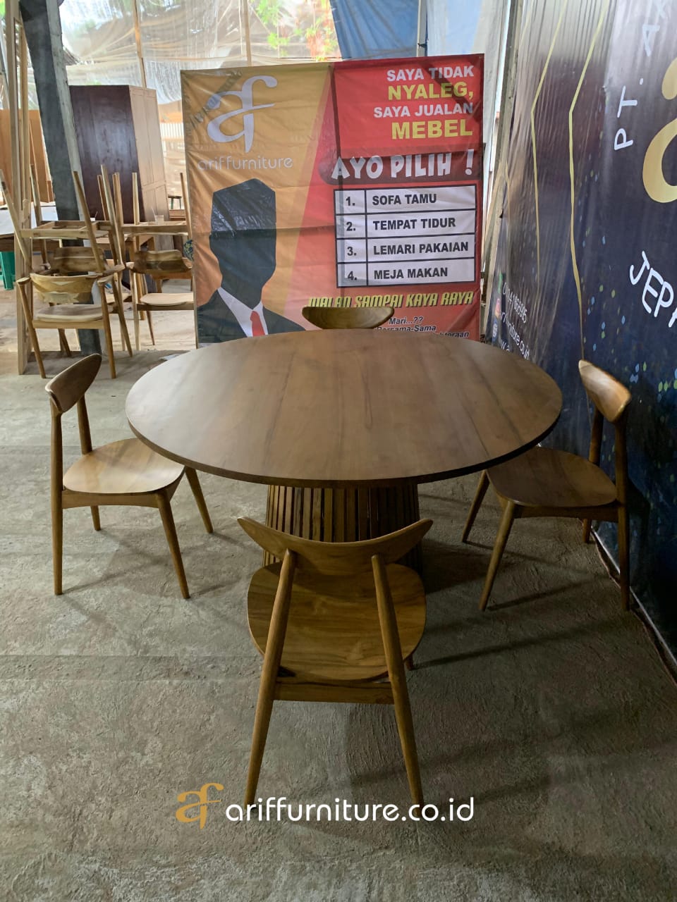 - Ukuran : Dimension Meja : Dimension Meja : Diameter 130 x Tinggi 75 cm -Dimension Kursi : Panjang 49 x Lebar 44 x Tinggi 80 cm