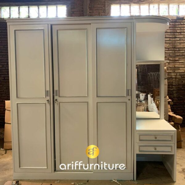 Lemari Jepara Baju Duco Minimalis, dengan keelokan kayu jati dan finishing duco yang elegan, menawarkan daya tarik visual yang tahan lama. Ketika dipadukan dengan Set Meja Rias yang dipahat dengan detail halus, menciptakan keseimbangan sempurna antara keindahan dan fungsionalitas.