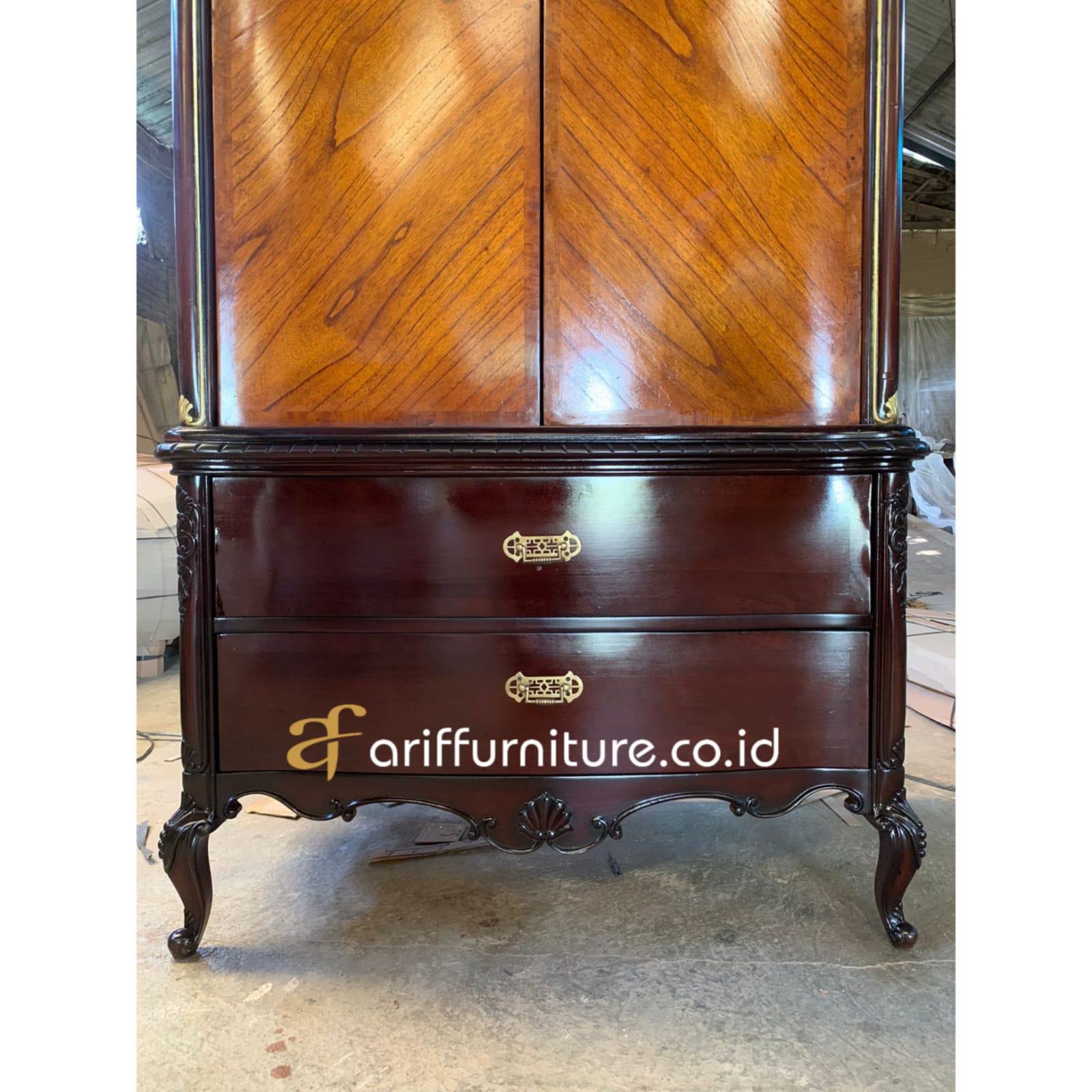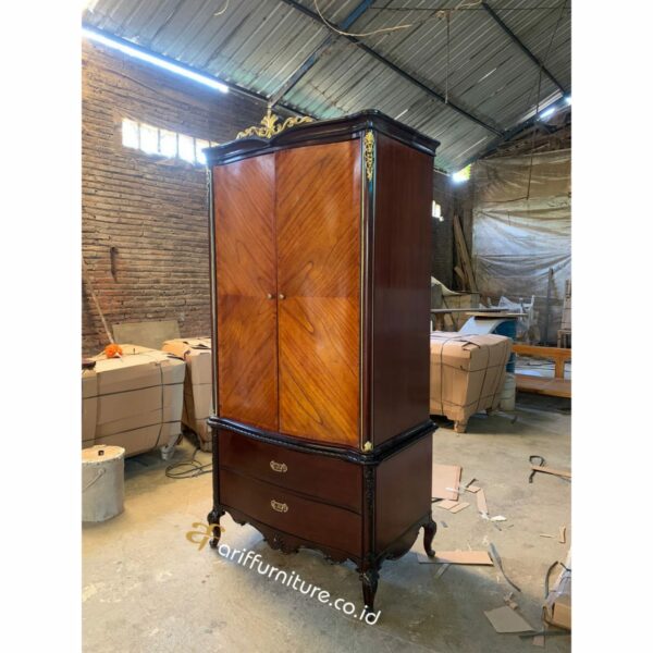 Dipahat dengan keahlian tangan yang luar biasa, lemari jenis ini tidak hanya merupakan furnitur fungsional, tetapi juga sebuah karya seni yang memukau. Dari ukiran rumit hingga pola yang elegan, setiap detailnya menceritakan cerita tentang kemewahan dan keanggunan. Para pengrajin di Jepara, dengan warisan tradisi yang kaya, mengukir setiap bagian dengan perhatian penuh, menciptakan karya yang memukau mata.
