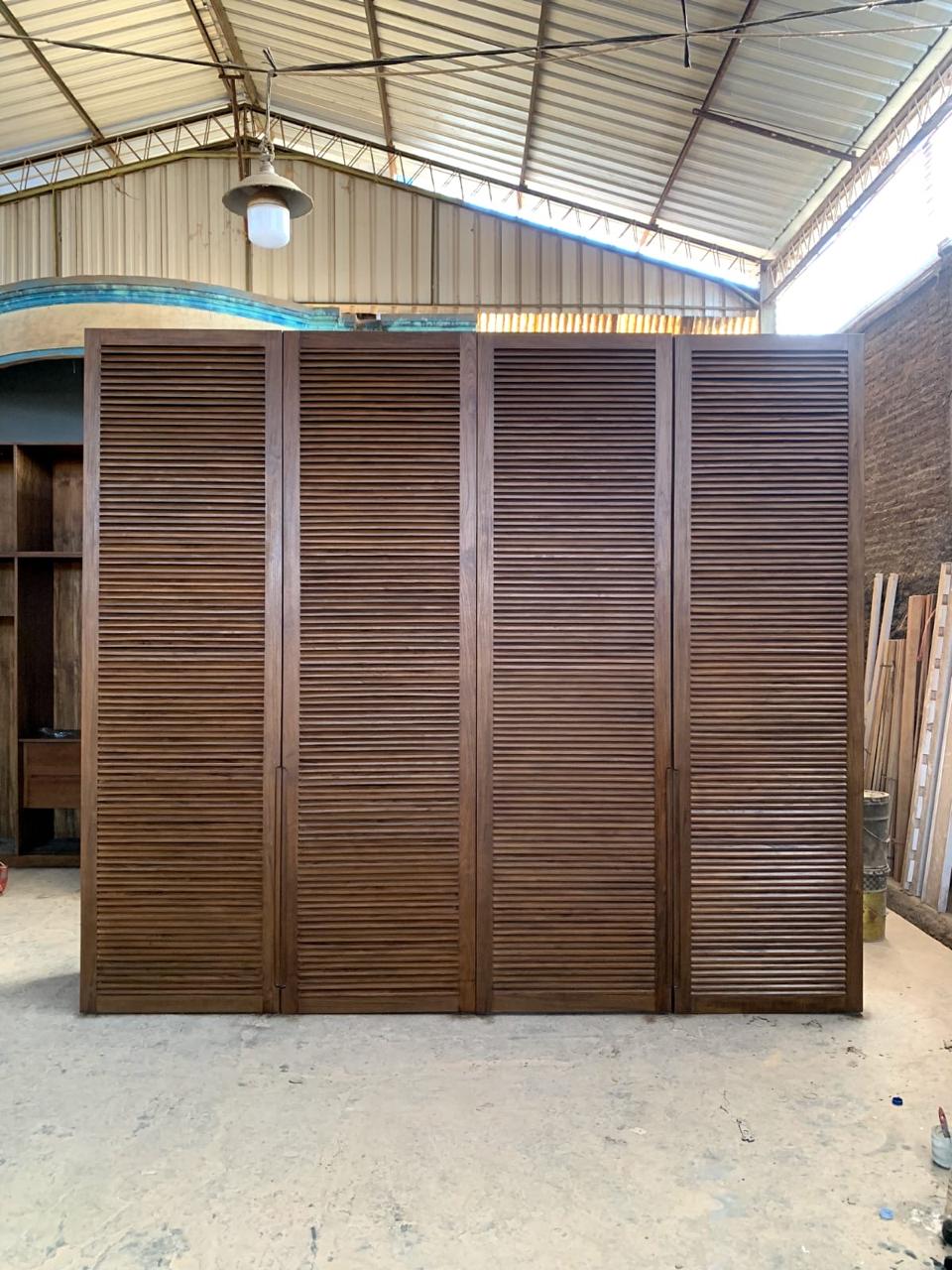 Lemari Pakaian 4 Pintu Minimalis Feneer Jati Jalusi