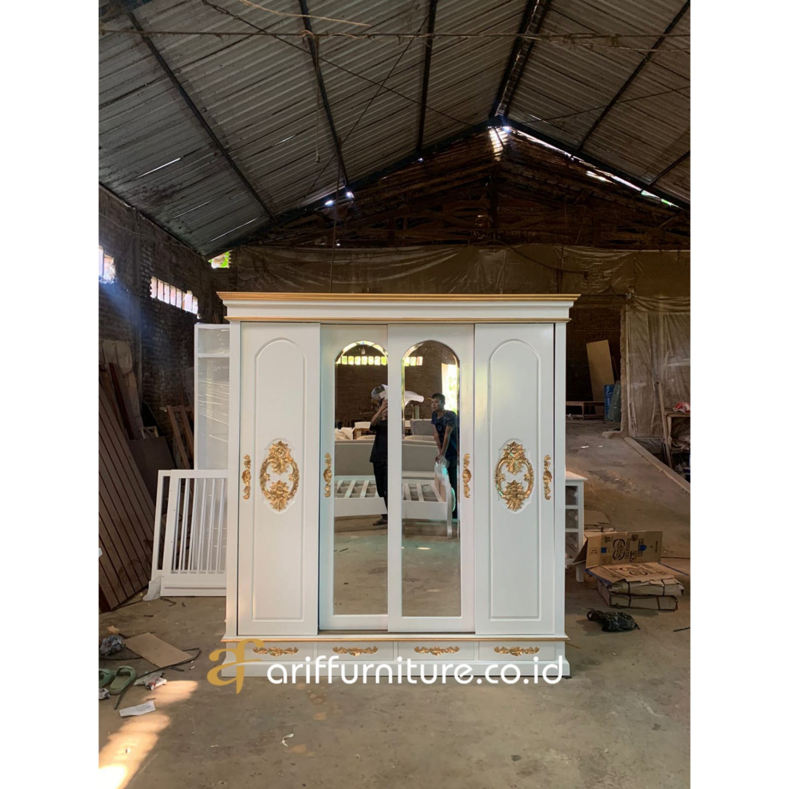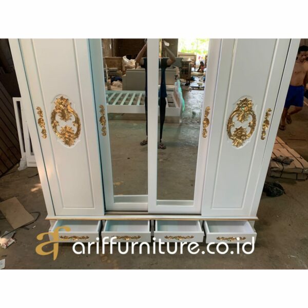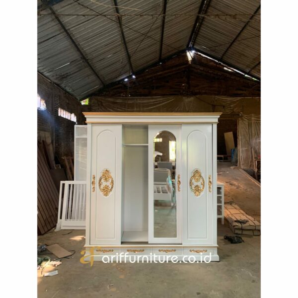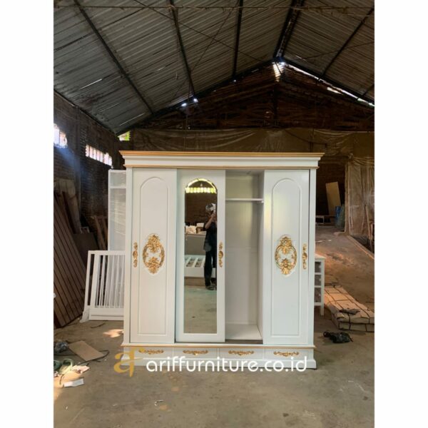 Jadi, jika Anda mencari lemari pakaian yang tak hanya praktis tetapi juga memesona secara visual, lemari pakaian putih ukir Jepara bisa menjadi pilihan yang sempurna untuk melengkapi ruangan Anda.