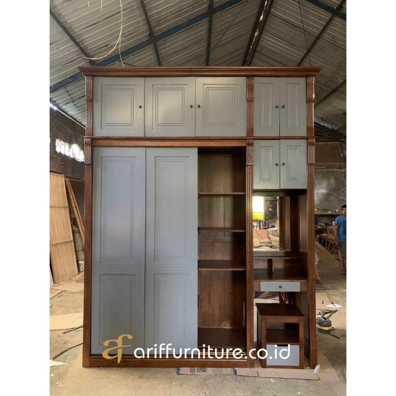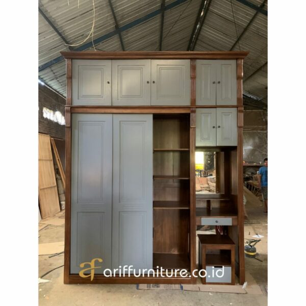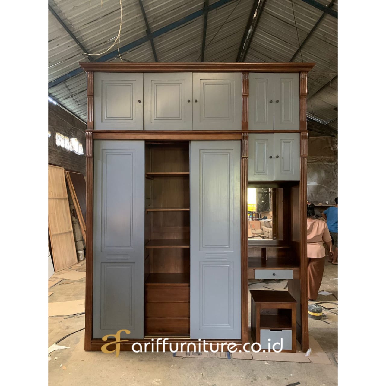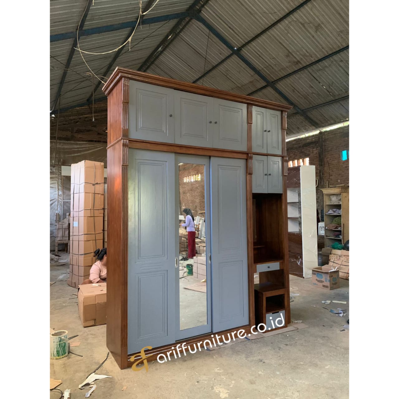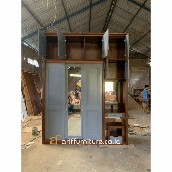 Desain interior adalah refleksi dari kepribadian seseorang, dan elemen-elemen seperti lemari dan meja rias memiliki peran penting dalam menciptakan tampilan yang elegan dan fungsional dalam sebuah ruangan. Lemari 3 pintu dan meja rias custom menjadi pilihan populer bagi mereka yang menginginkan penyimpanan yang luas dan desain yang sesuai dengan preferensi pribadi. memberikan ruang penyimpanan yang luas sambil mempertahankan estetika yang elegan. Dengan pilihan bahan yang beragam, mulai dari kayu solid hingga material modern yang tahan lama, lemari semacam ini tidak hanya menambah fungsi penyimpanan, tetapi juga menjadi poin fokus dalam ruangan.