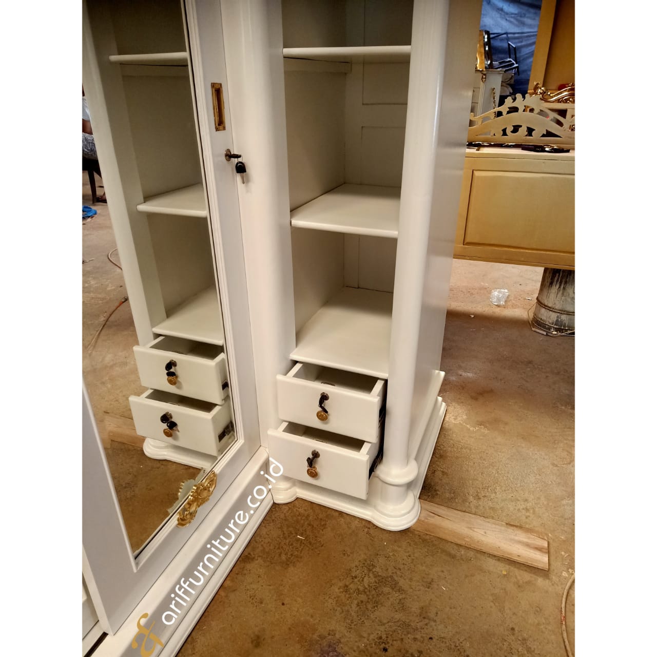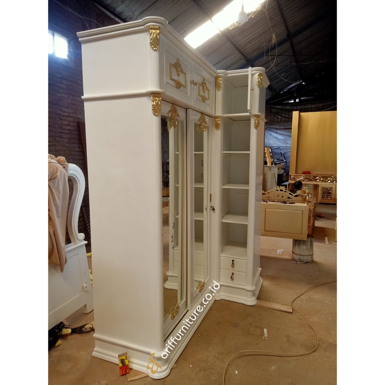 Lemari sudut Leter L Duco klasik mewah tidak hanya sekadar furnitur, tetapi juga sebuah karya seni yang menyatu dengan ruang Anda. Dengan desain yang anggun, fungsionalitas yang luar biasa, dan kualitas yang prima, lemari ini adalah investasi yang tepat untuk meningkatkan nilai dan keindahan dalam rumah Anda.