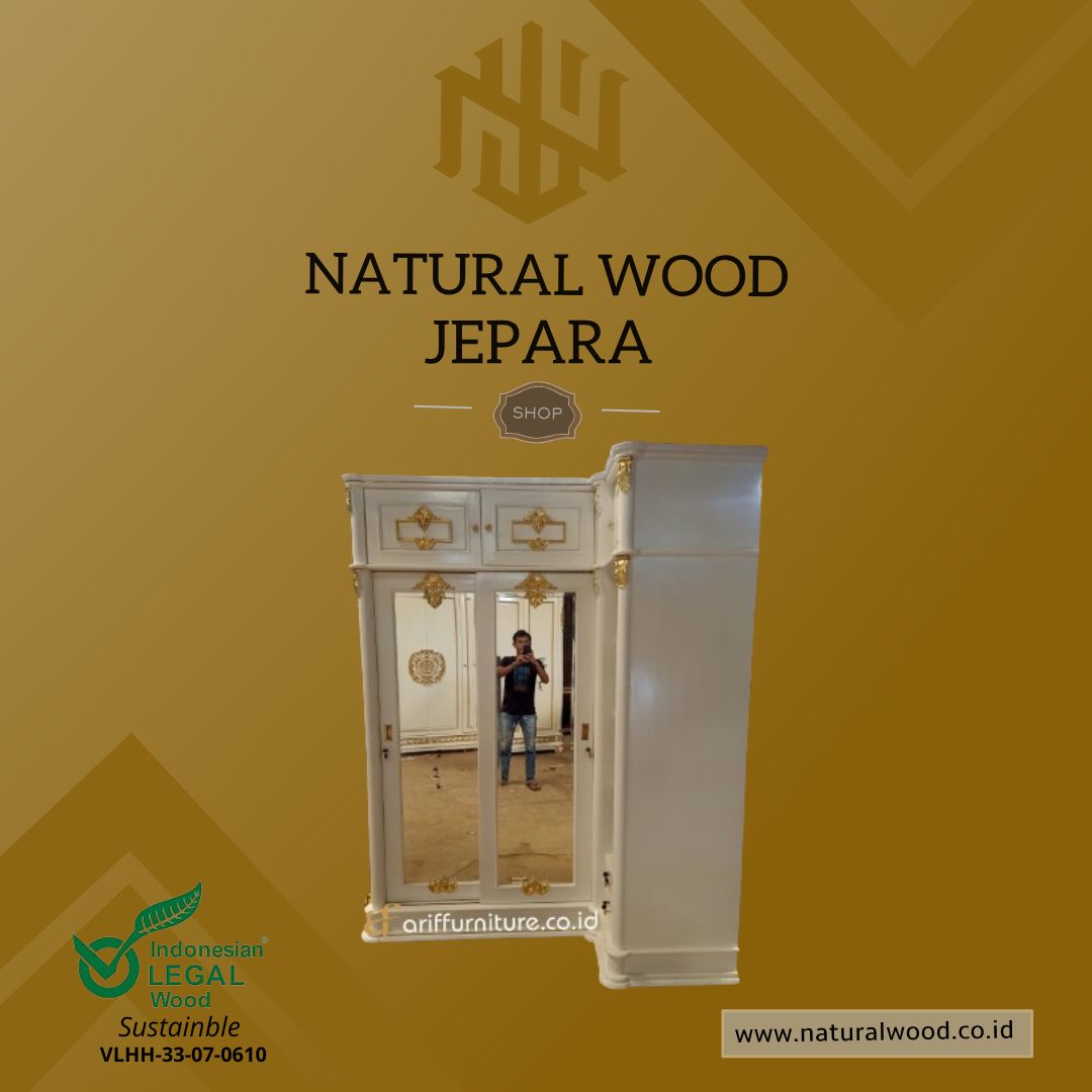 - Bahan Material : Natural Wood Jepara menggunakan bahan material kayu jati atau mahoni berkualitas dalam memproduksi produk mebel atau furniture karena mempunyai Sertifikat Resmi