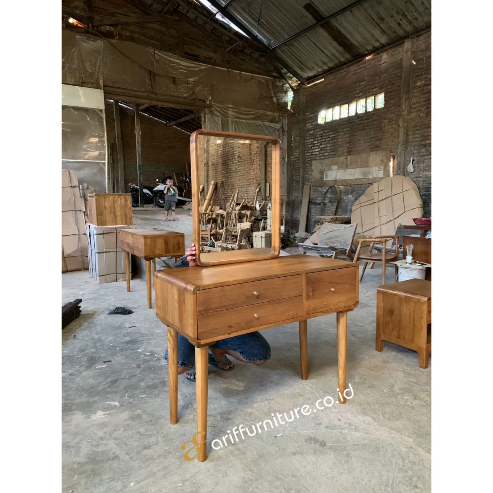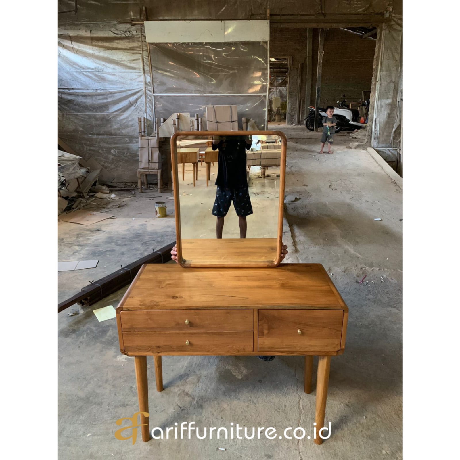 - Ukuran : Dimension Meja Rias : Panjang 45 x Lebar 100 x Tinggi 80 cm -Dimension Pigura Kaca : Panjang 70 x Tinggi 55 cm