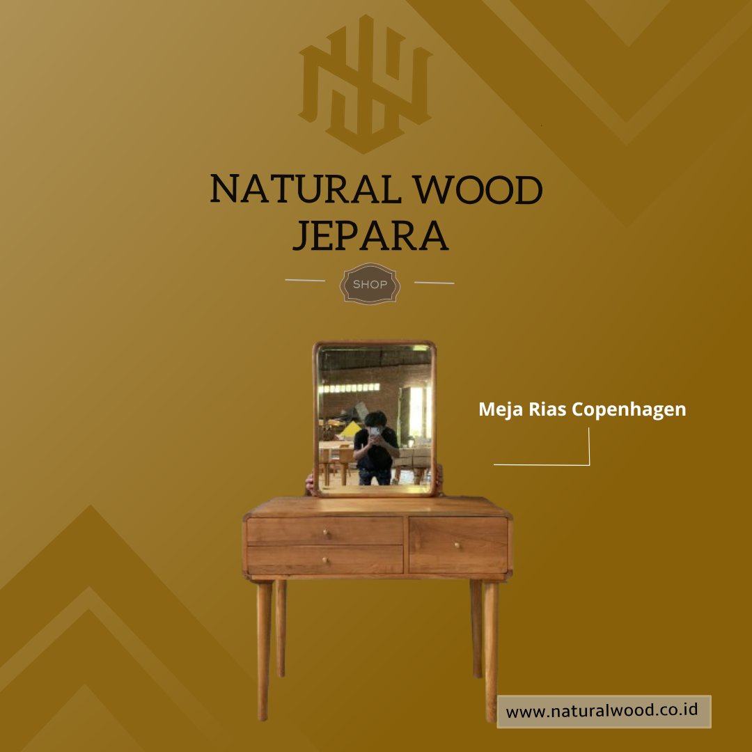 Model ini memancarkan pesona era retro dengan desainnya yang sederhana namun elegan. Terinspirasi oleh gaya Skandinavia, Meja Rias Copenhagen Console Set menggabungkan elemen-elemen bergaya retro dengan nuansa modern. Dengan garis-garis yang bersih dan warna kayu alami yang hangat, meja rias ini menjadi pilihan sempurna untuk mereka yang menginginkan sentuhan klasik dalam ruangan mereka.