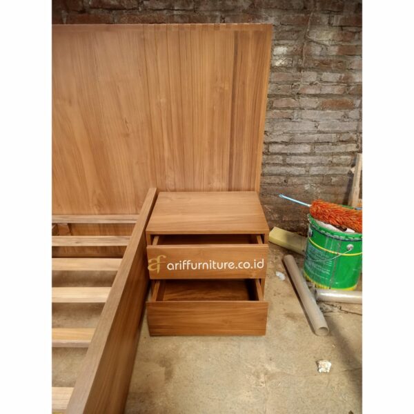 Penambahan laci pada tempat tidur memberikan keuntungan tambahan dalam hal fungsionalitas. Dengan memiliki dua laci di sisi tempat tidur, Anda dapat dengan mudah menyimpan barang-barang seperti buku, pakaian tidur, atau barang-barang pribadi lainnya. Ini tidak hanya menjaga ruangan tetap teratur, tetapi juga membuat barang-barang tersebut mudah diakses tanpa harus meninggalkan tempat tidur.