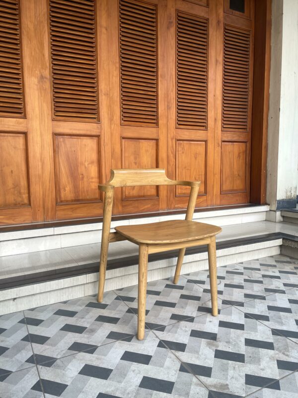 Salah satu keunggulan utama dari kursi ini adalah tampilan warna natural terang yang kekinian. Warna bleaching memberi kesan bersih, lapang, dan sangat cocok dipadukan dengan interior bergaya skandinavia, tropikal, ataupun rustic modern. Proses bleaching yang profesional juga membuat permukaan kayu tetap kuat dan tidak rapuh, menjadikan kursi ini tetap kokoh meskipun tampilannya lebih lembut.