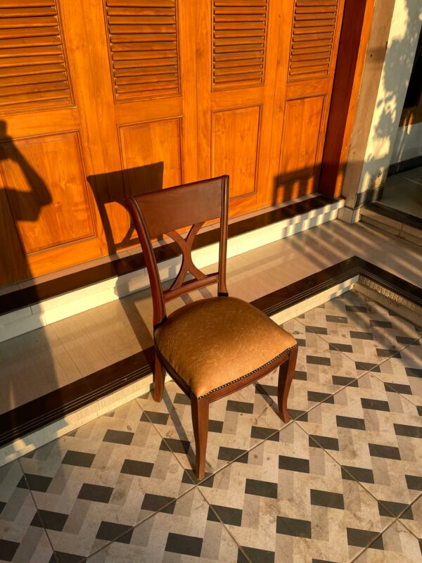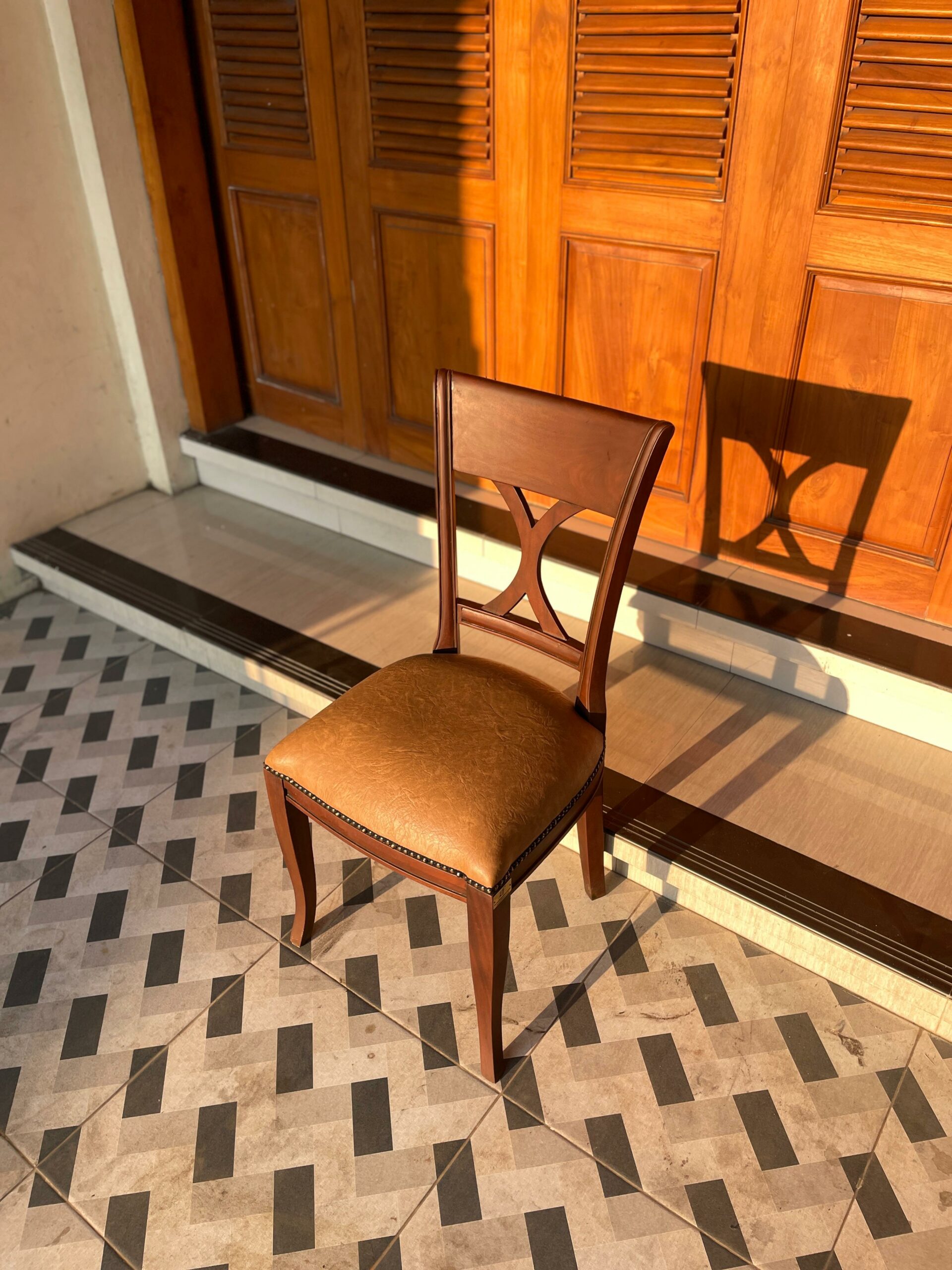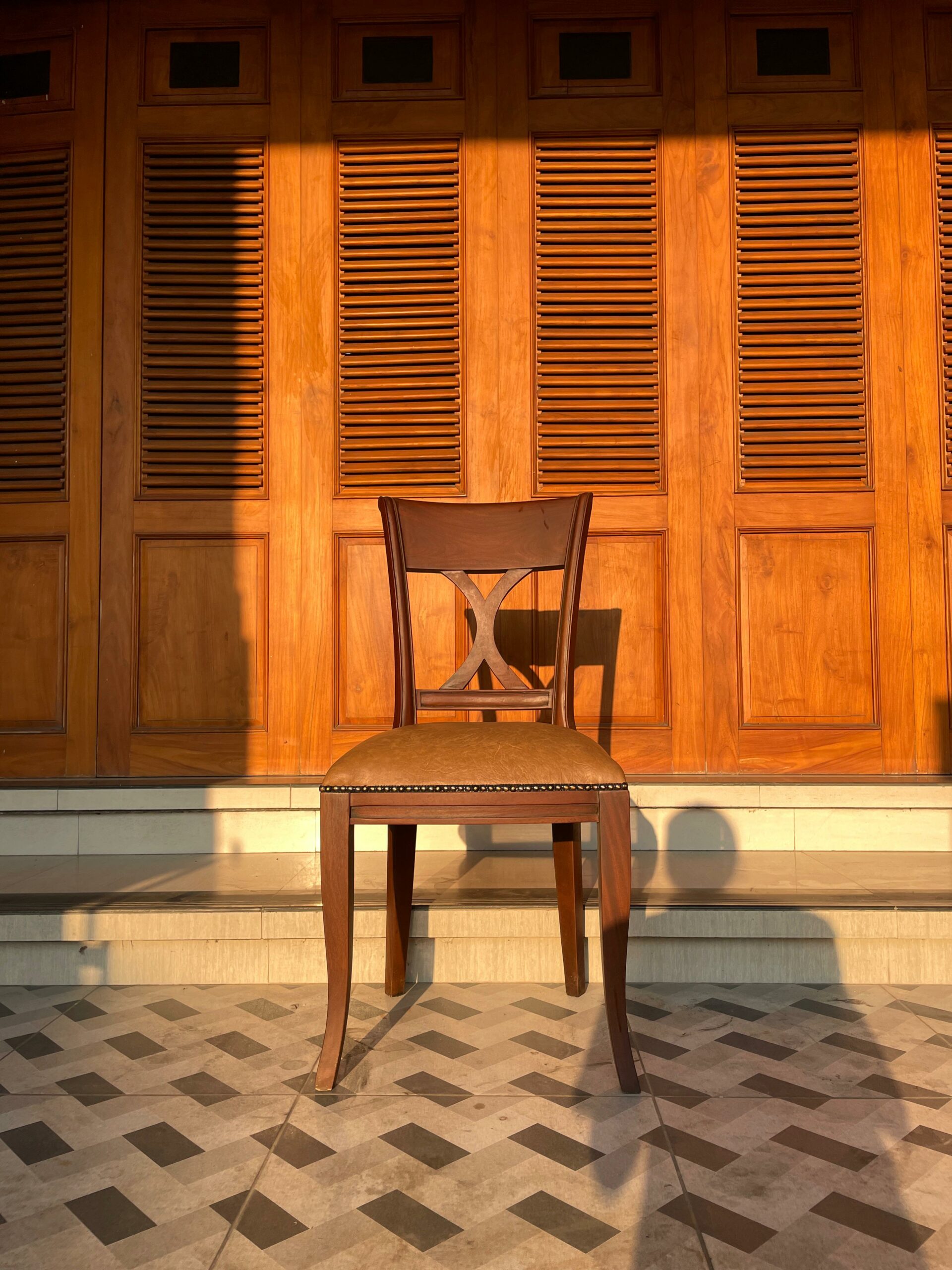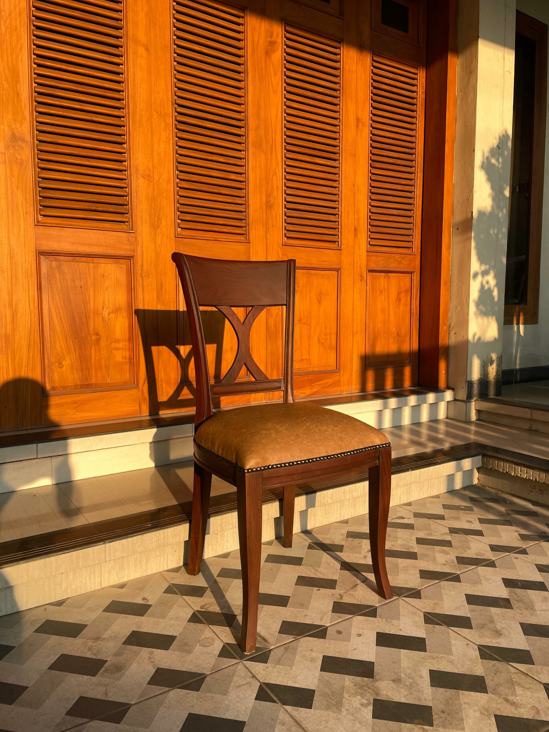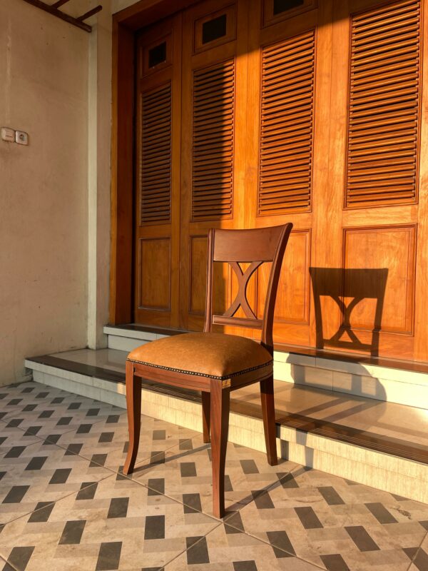 Salah satu keunggulan utama kursi makan ini adalah penggunaan material kayu jati solid berkualitas tinggi. Kayu jati terkenal karena kekuatannya, daya tahannya terhadap rayap, serta corak serat alaminya yang elegan. Hal ini membuat kursi tidak hanya kokoh dan tahan lama, tetapi juga memiliki nilai estetika tinggi. Dari segi desain, kursi ini mengusung gaya minimalis yang bersih dan modern, cocok dipadukan dengan berbagai gaya interior rumah, mulai dari skandinavia hingga rustic..