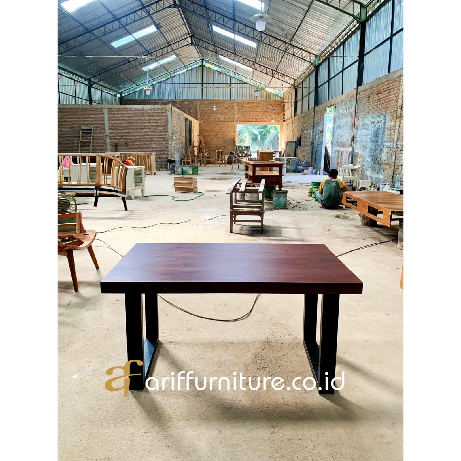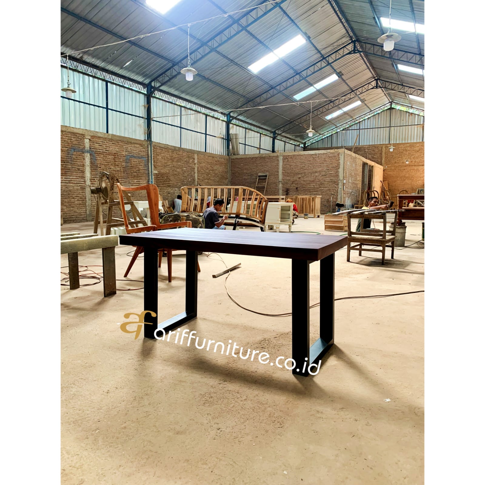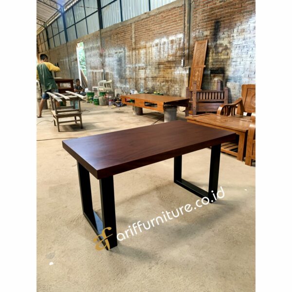 Elegansi Fungsional Meja Makan Kayu TPK Perhutani Minimalis dengan Sentuhan Modern Kaki Besi