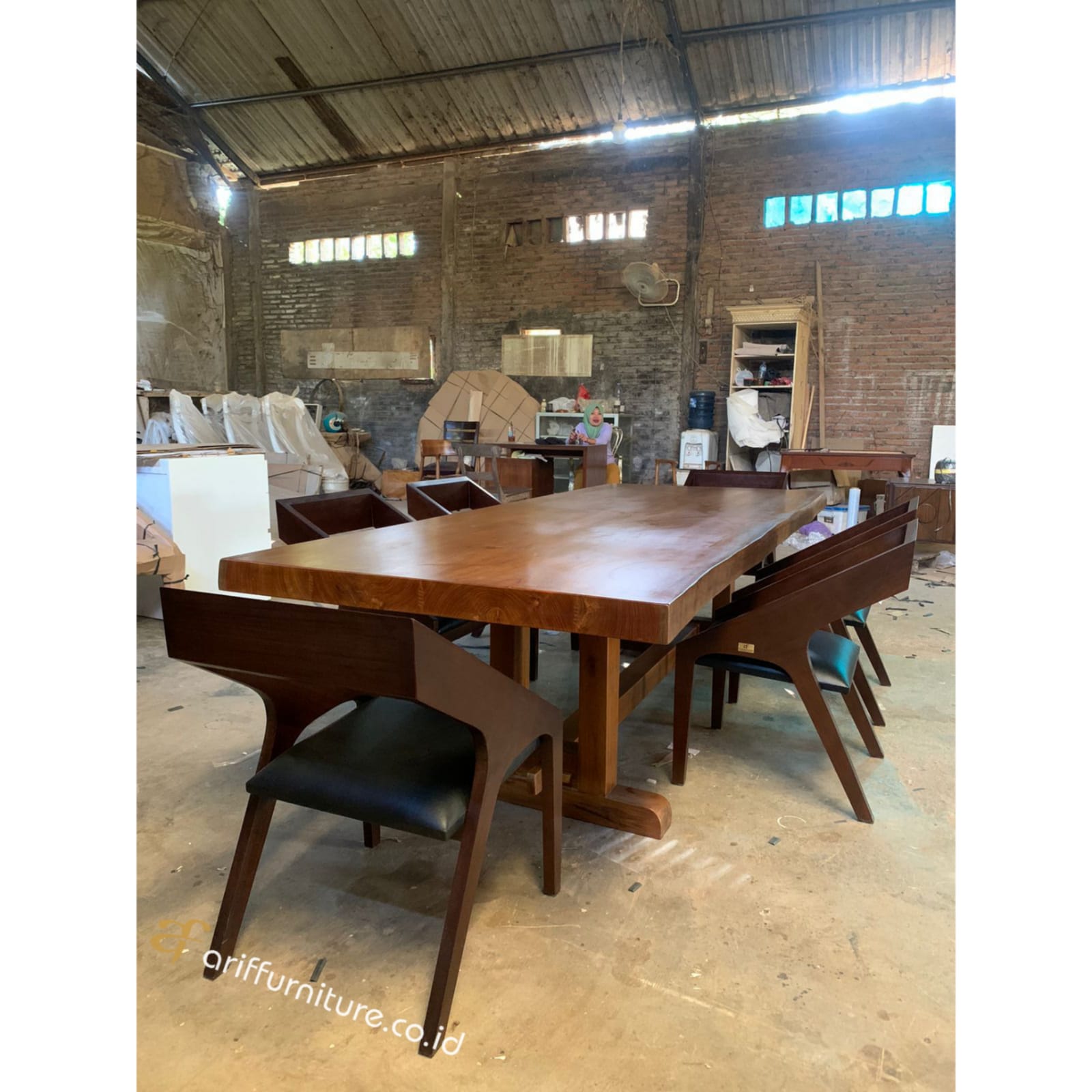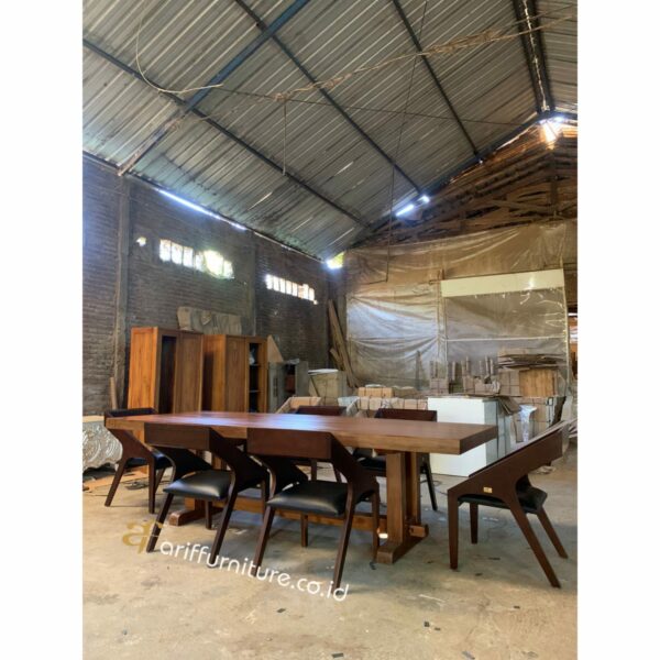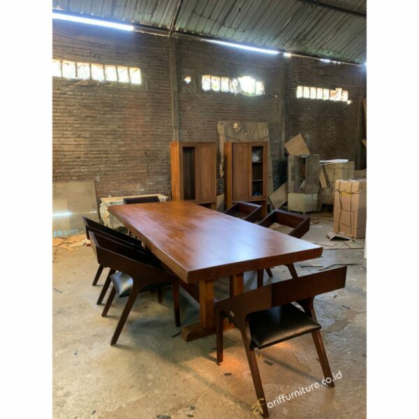 Ukuran : -Dimension Meja : Panjang 280 x Lebar 110 x Ketebalan 80 cm -Dimension Kursi : Panjang 45 x Lebar 40 x Tinggi 80 cm - Kelembapan : 9-12%