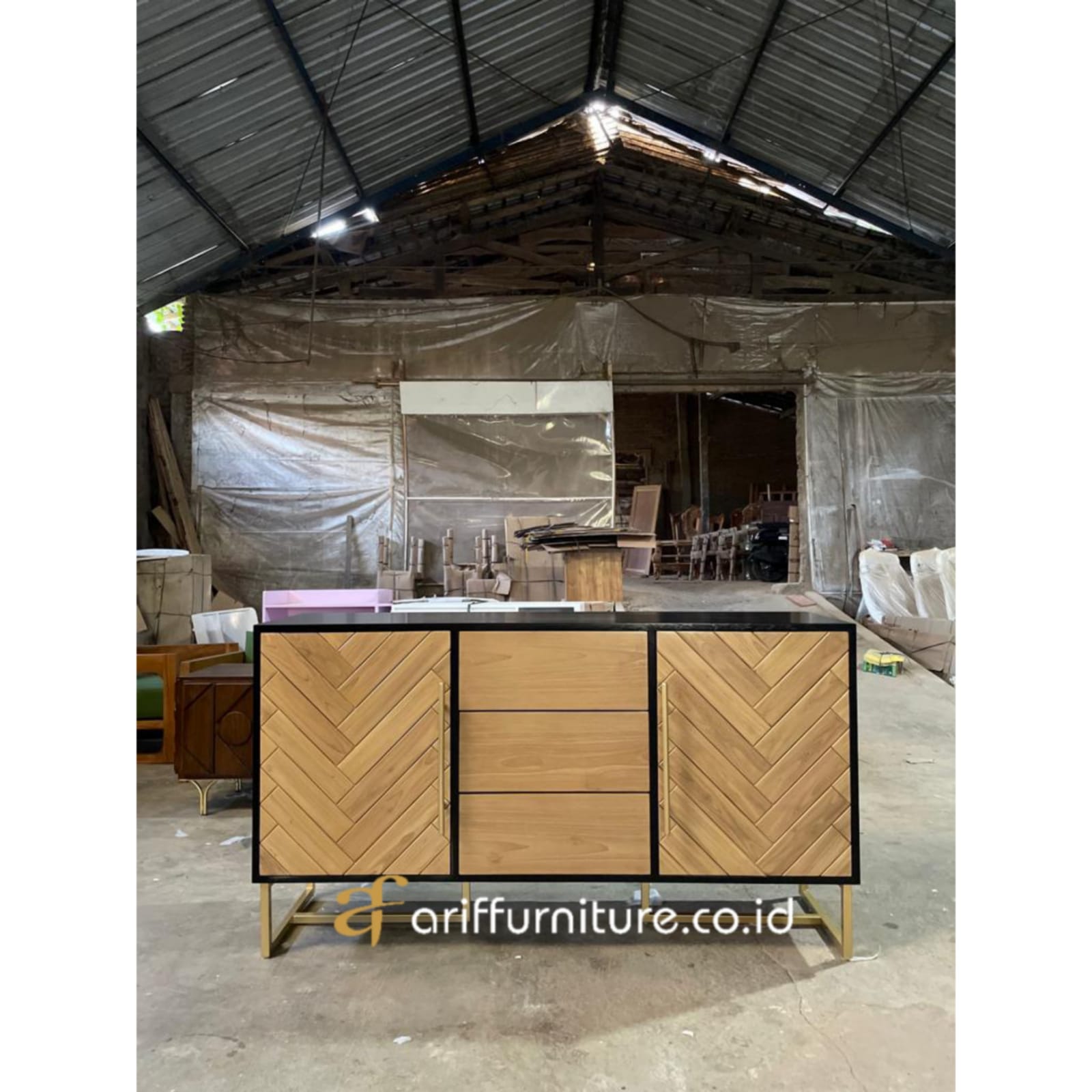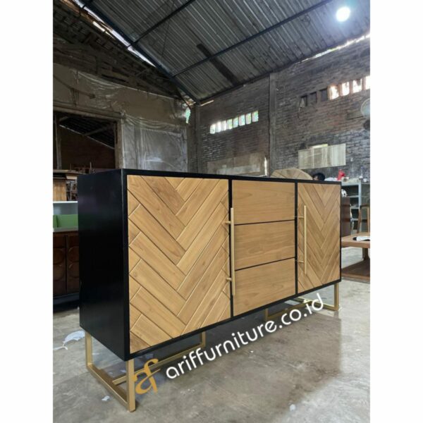 Bufet credenza minimalis dengan sentuhan kayu jati dan kaki stainless steel telah menjadi sorotan utama di dunia desain. Kombinasi kayu jati yang hangat dan tahan lama dengan elemen modern dari stainless steel menciptakan harmoni antara gaya klasik dan kontemporer yang mengagumkan.