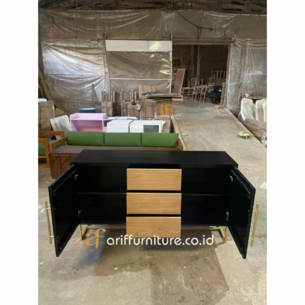 Dalam desain minimalis modern, fokus utama adalah pada kesederhanaan dan keselarasan. Bufet credenza ini tidak hanya memberikan ruang penyimpanan yang luas, tetapi juga memungkinkan fleksibilitas dalam penataan ruangan. Dengan desain yang ramping dan elegan, bufet credenza ini cocok untuk ruang tamu, ruang makan, kantor, atau bahkan ruang tidur, menyesuaikan kebutuhan fungsional dan estetika modern.