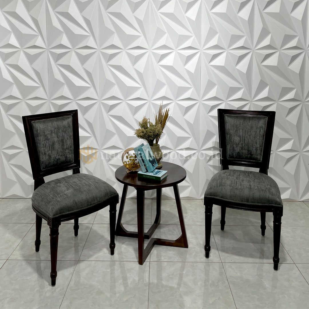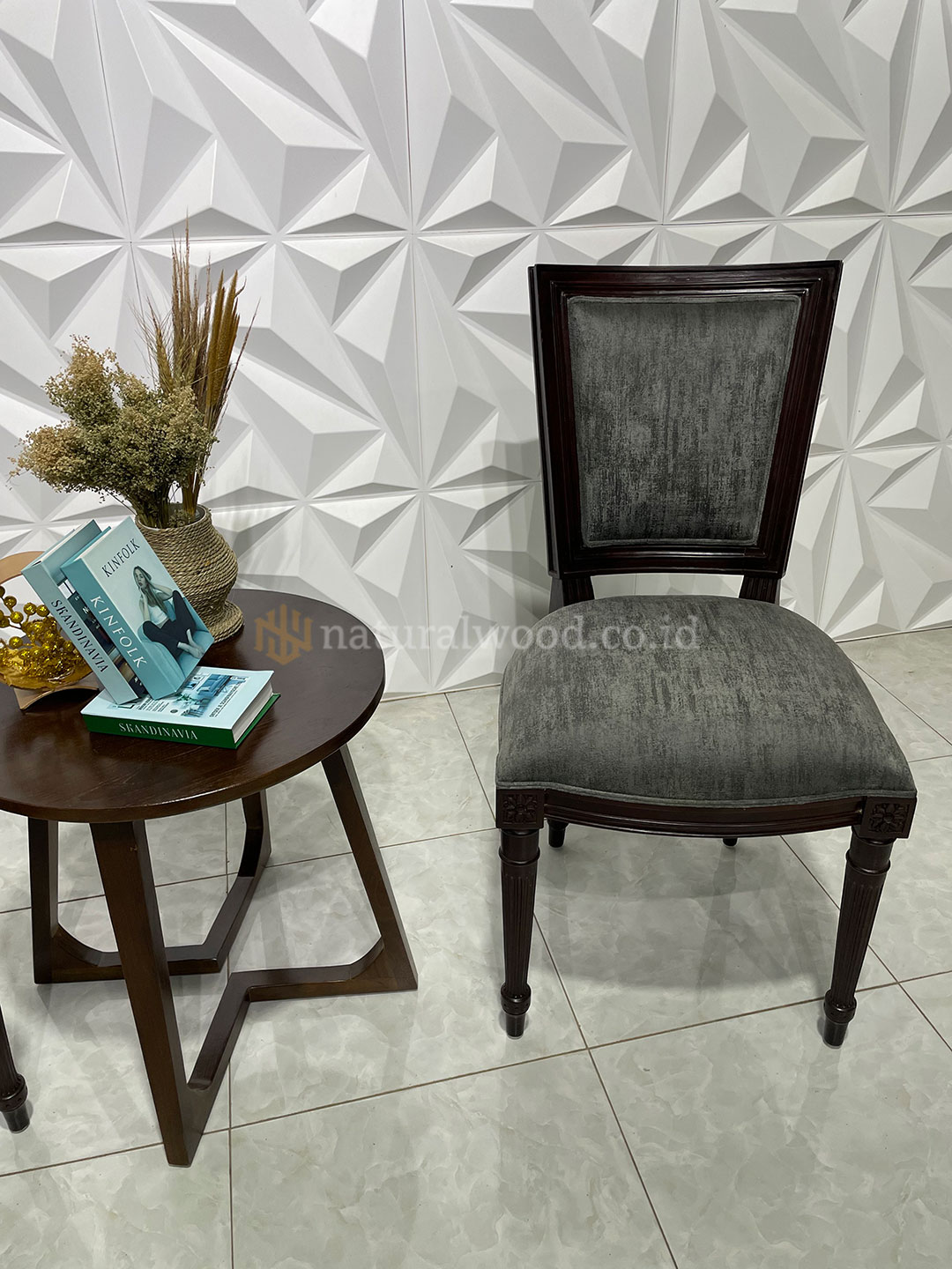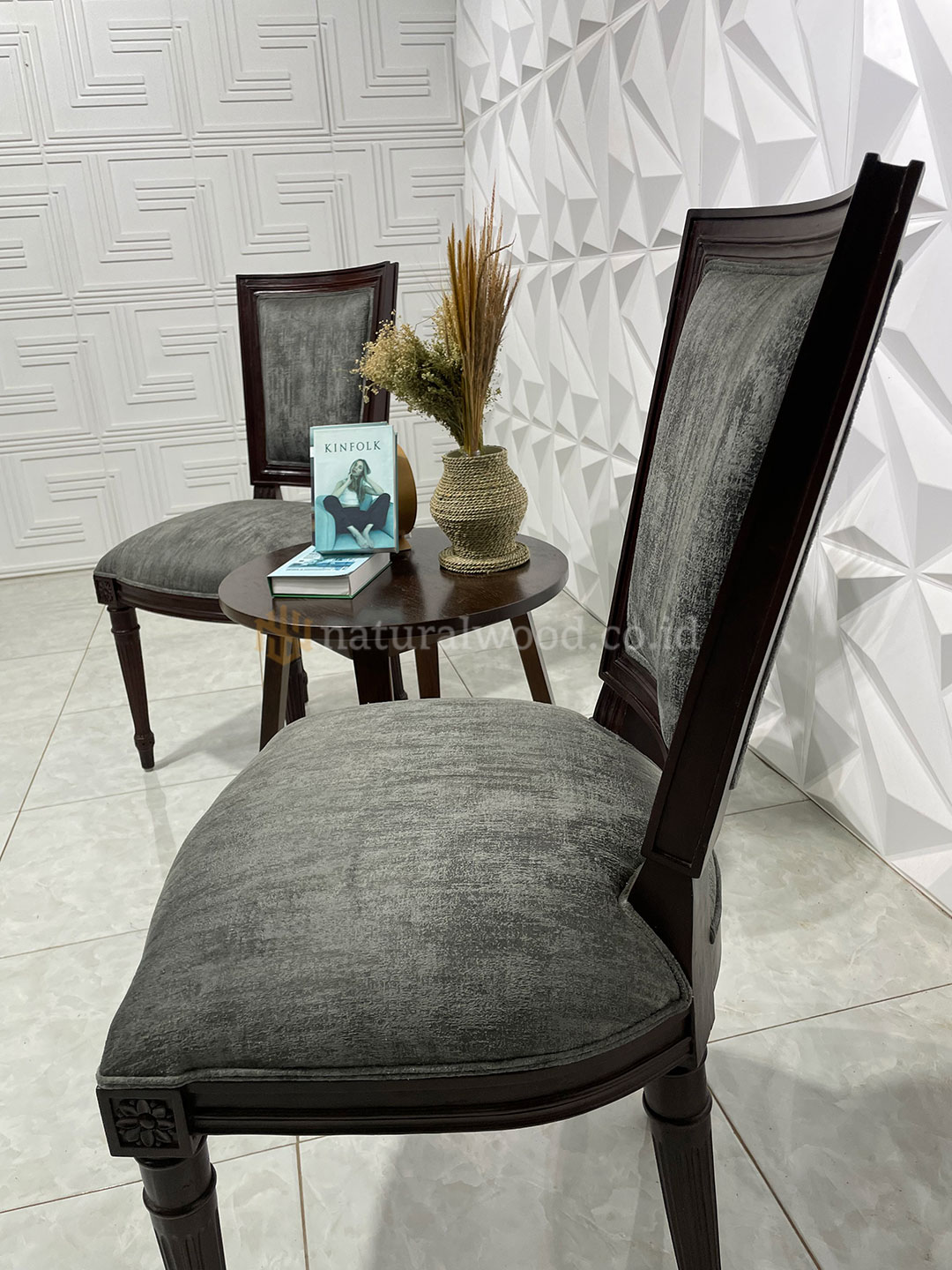 Setiap detail kursi dikerjakan dengan teliti, mulai dari rangka yang kokoh hingga finishing halus yang menampilkan keindahan serat alami kayu jati. Finishing natural tidak hanya memperindah tampilan, tetapi juga berfungsi melindungi kayu dari kelembapan dan serangan rayap. Desain ergonomis pada sandaran dan dudukan memberikan kenyamanan optimal, menjadikan kursi ini ideal untuk menerima tamu dalam waktu lama.
