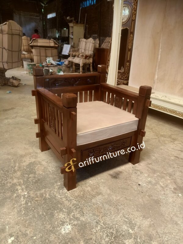 Kursi teras adalah salah satu elemen kunci dalam menciptakan ruang terbuka yang nyaman dan menarik. Dalam hal ini, kursi teras kayu jati solid dengan dudukan bantalan menjadi pilihan yang tak hanya estetis namun juga memberikan kenyamanan optimal. Kayu jati, dengan kepadatan dan kekuatannya yang tinggi, memberikan fondasi kokoh untuk kursi teras yang tahan lama.
