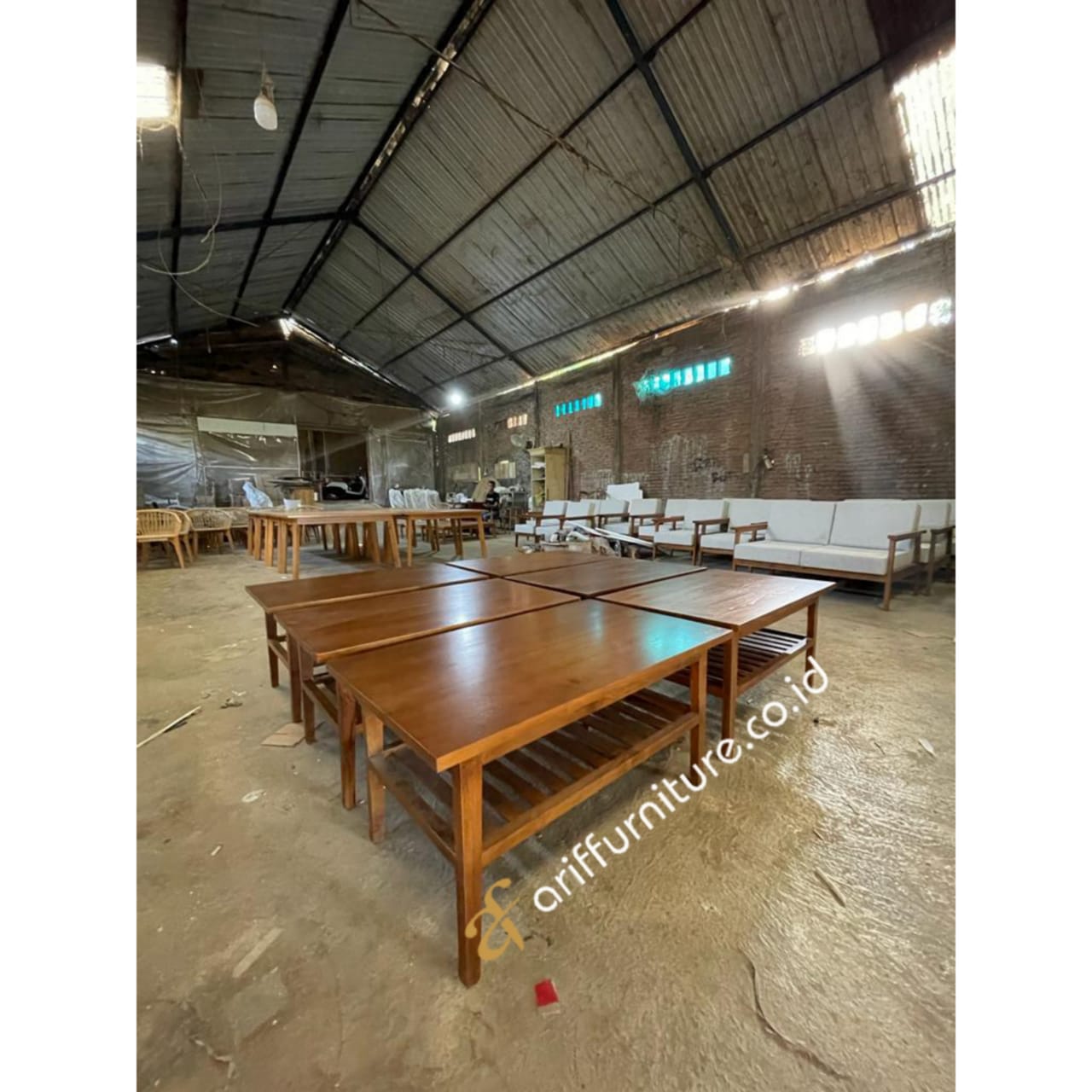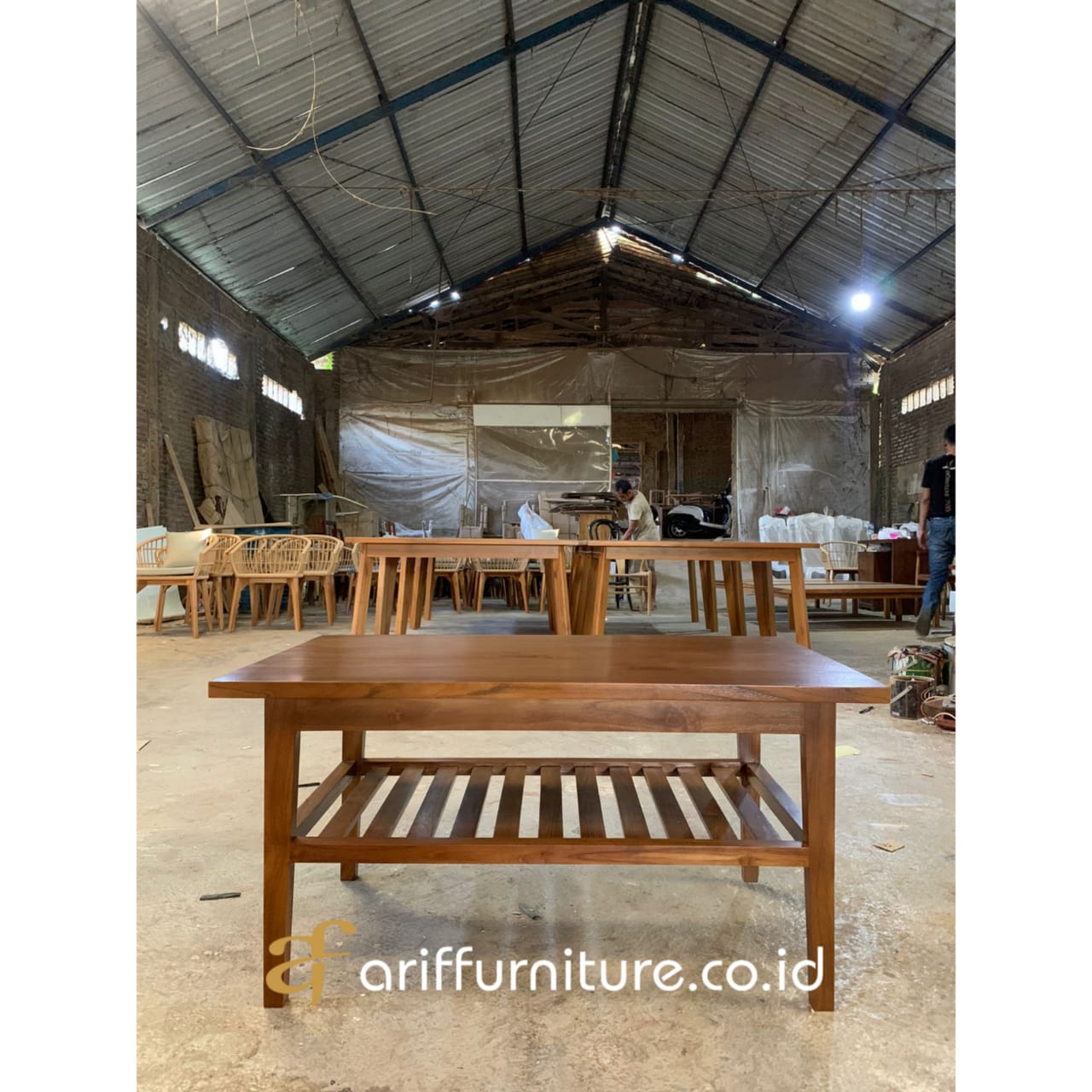 Di tengah-tengah hiruk-pikuk kehidupan modern, ruang tamu adalah oase yang menawarkan kenyamanan dan ketenangan. Di dalamnya, sebuah meja sederhana dapat menjadi pusat perhatian yang memperkaya keindahan dan fungsi ruangan. Dengan menggunakan kayu jati yang khas dan alami, meja ruang tamu minimalis memancarkan kehangatan yang memukau, menambahkan sentuhan elegan ke dalam estetika ruang.
