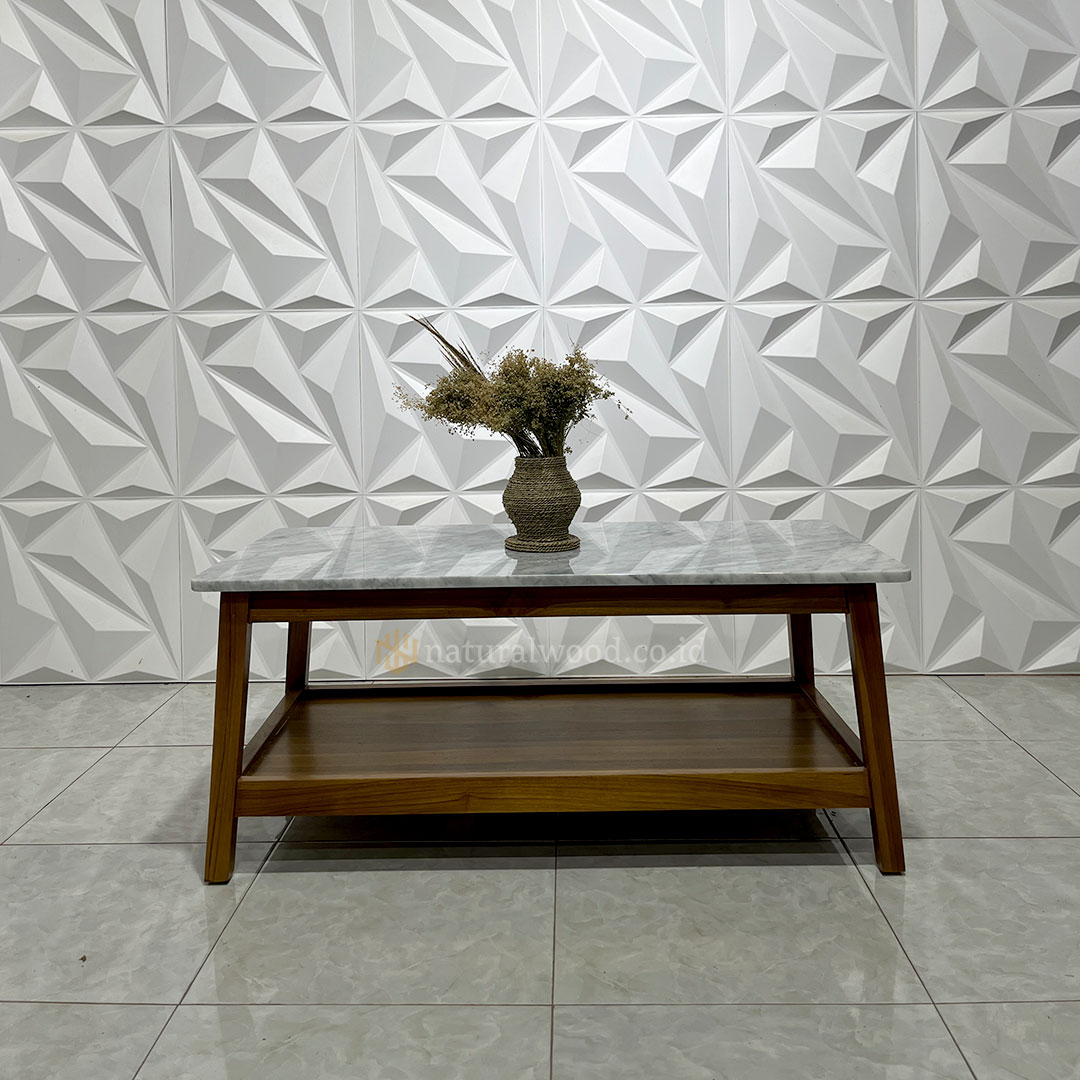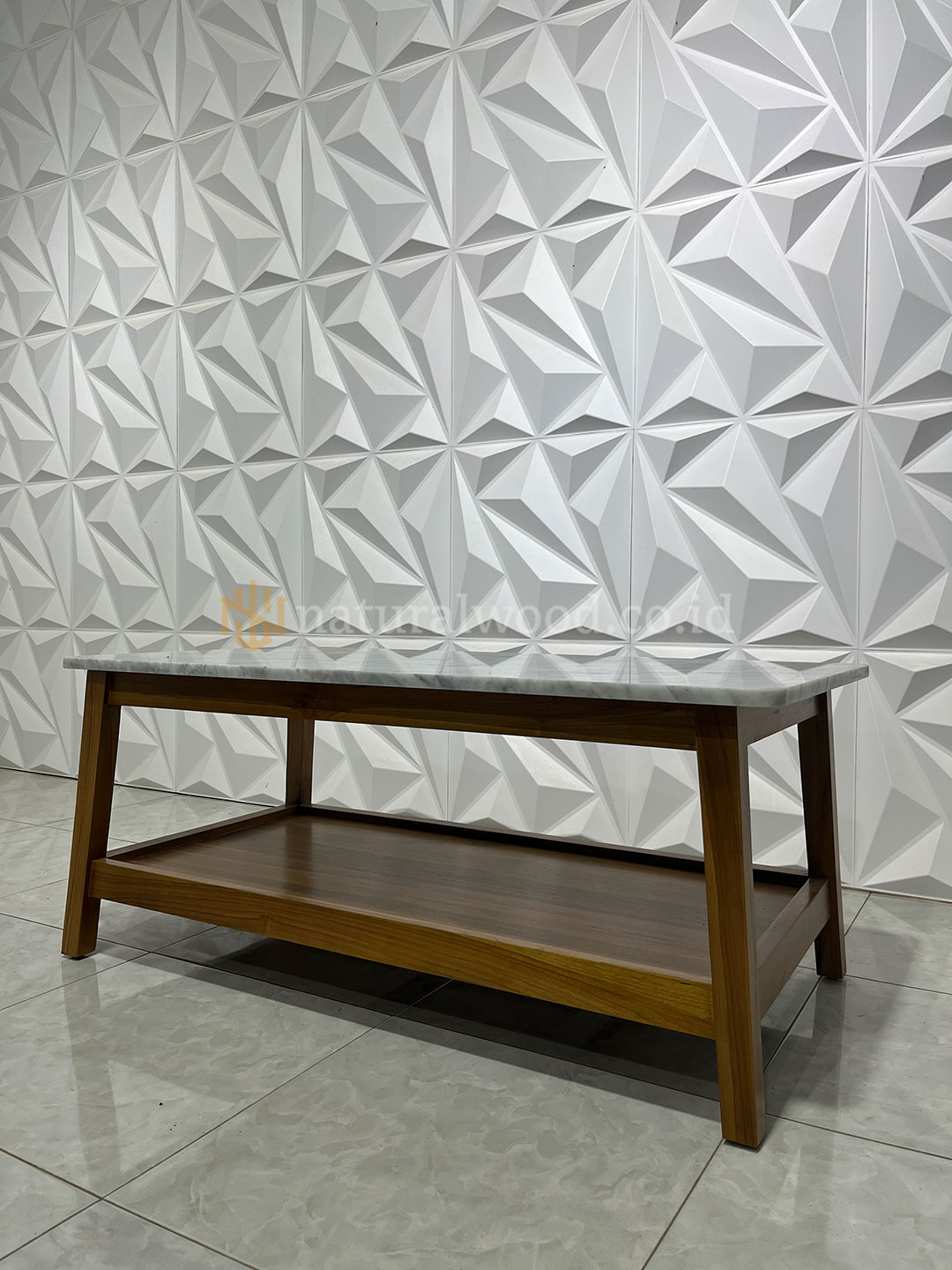Desain minimalis modern yang diusung menghadirkan tampilan elegan dan sederhana, sangat cocok untuk mempercantik ruang tamu bergaya kontemporer maupun klasik. Permukaan meja yang halus dengan finishing natural menonjolkan serat kayu jati yang khas dan eksotis, memberikan kesan hangat dan mewah pada interior ruangan Anda.