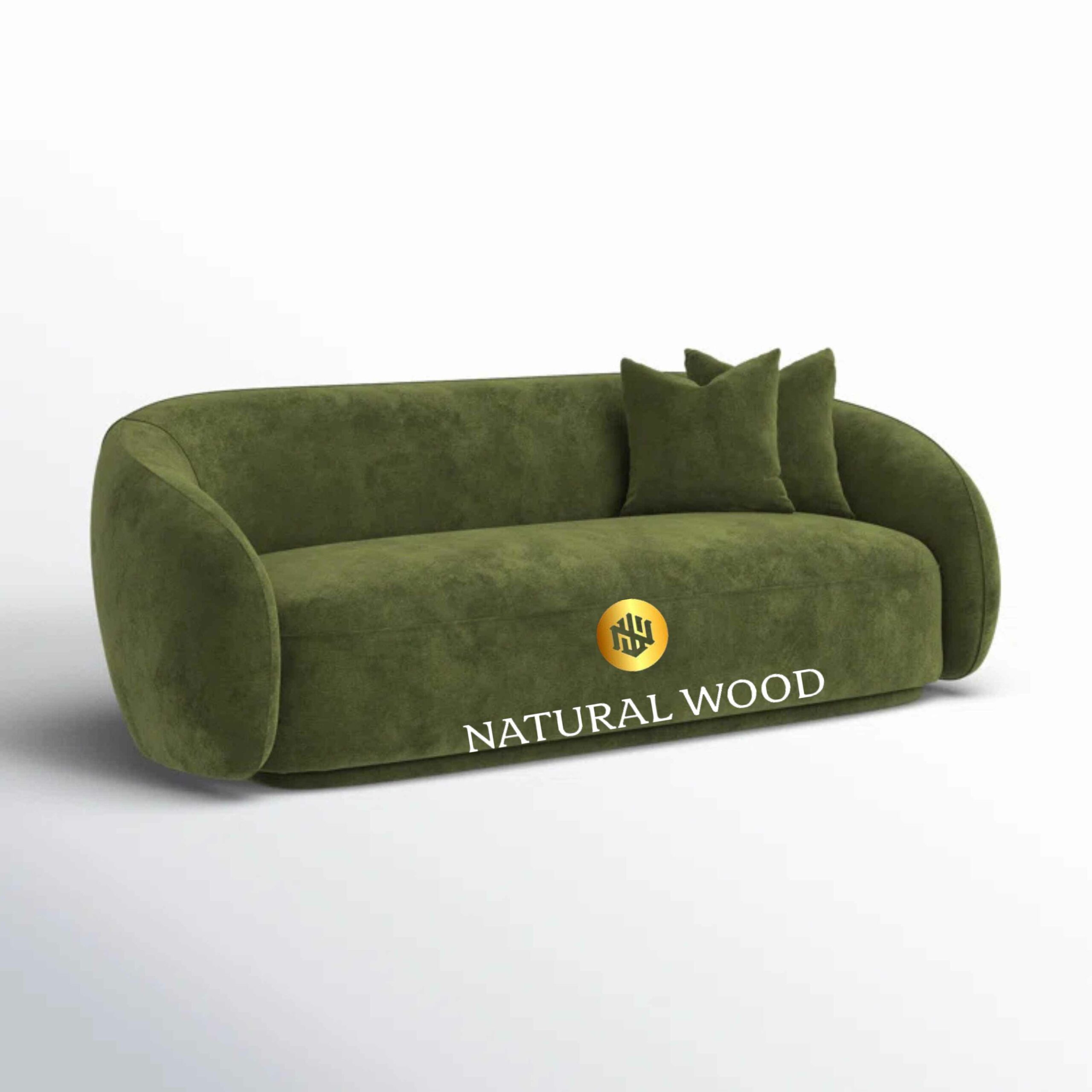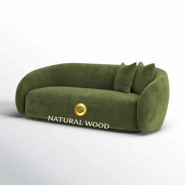 Warna hijau tua yang kalem memberi sentuhan alam yang adem ke dalam ruang tamu. Ditambah lagi dengan bentuknya yang membulat lembut dan busa tebal – ini bukan cuma sofa, tapi juga statement piece.