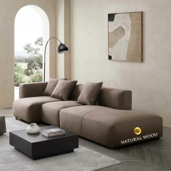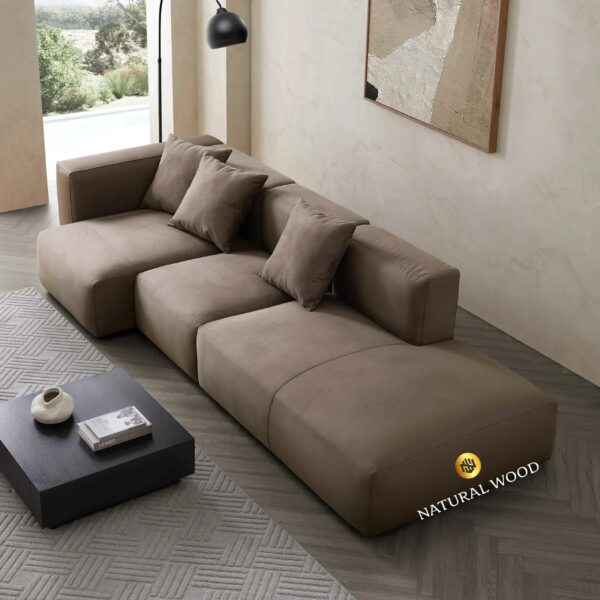 Dengan bentuk L-shape low profile, sofa ini memberikan kesan luas dan rapi pada ruangan Anda. Garis-garisnya yang bersih dan tampilan tanpa kaki membuatnya terlihat menyatu dengan lantai, menambah estetika minimalis yang hangat dan tenang.