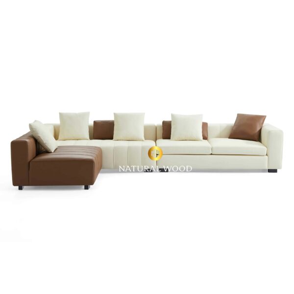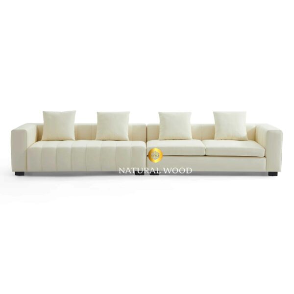 kesederhanaannya yang estetis—garis bersih, warna netral, dan fokus pada fungsi. Set sofa ini dirancang dengan rangka kayu jati solid, dikombinasikan dengan bantalan kulit berkualitas tinggi yang lembut namun tahan lama. Sentuhan akhir yang halus menjadikan sofa ini cocok untuk berbagai konsep interior modern.