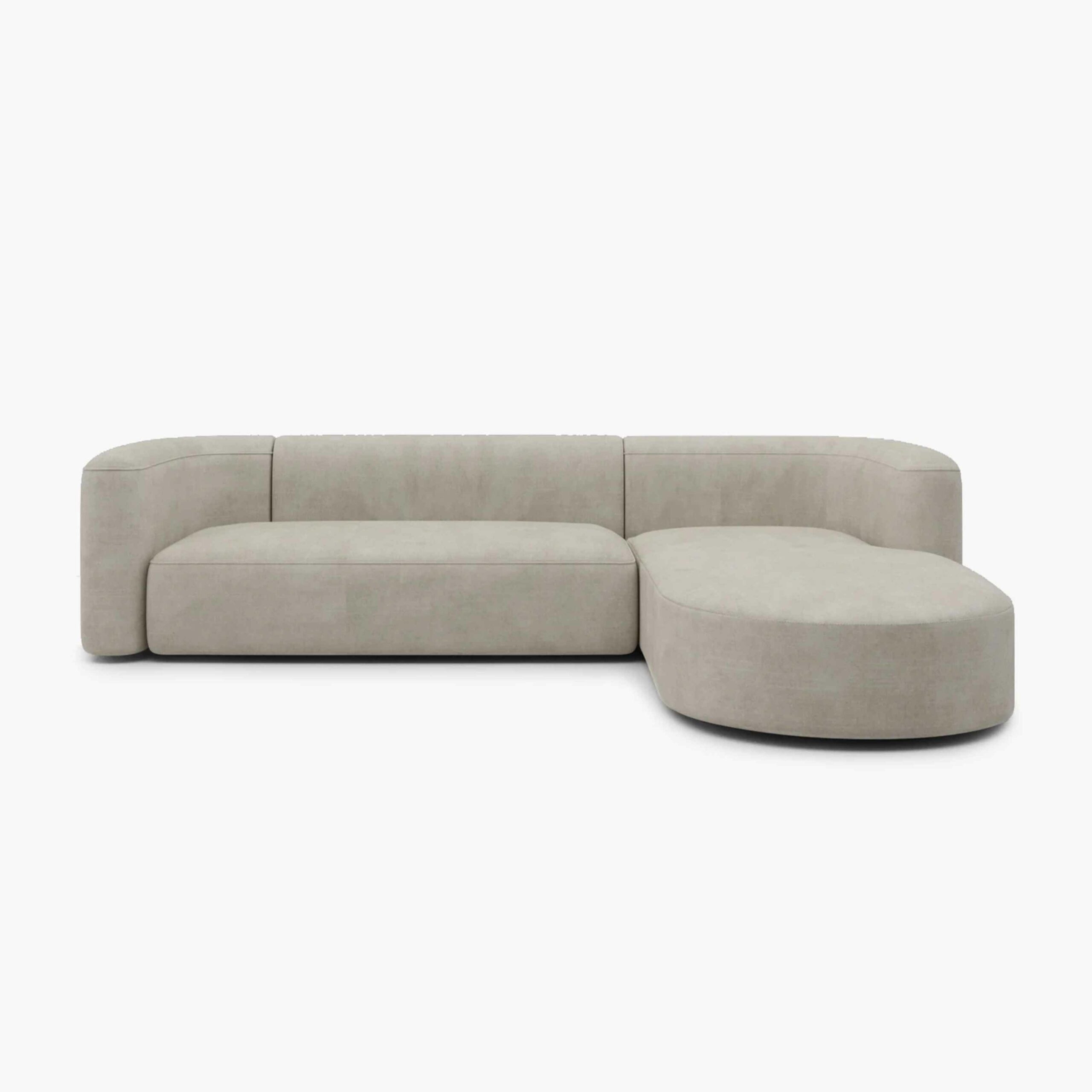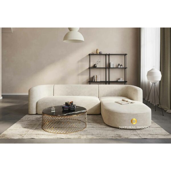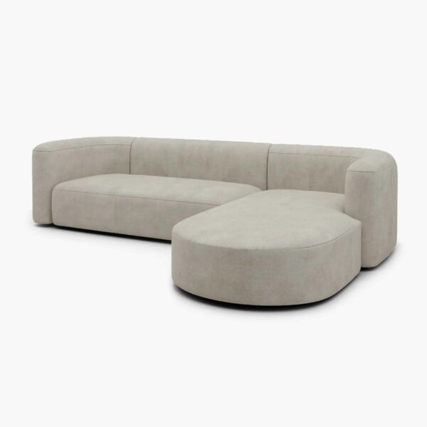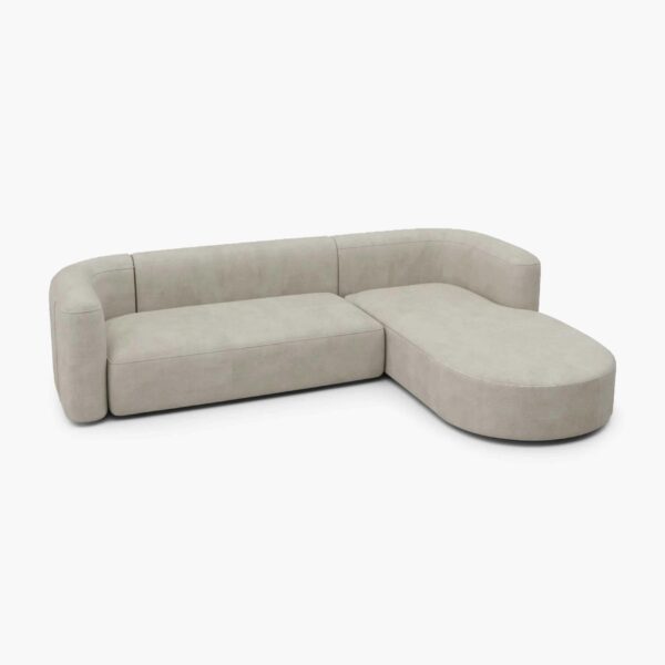 Dengan bentuk L-Shape asimetris dan ujung membulat, sofa ini memancarkan kesan hangat dan ramah. Desainnya yang minim detail namun kuat secara visual membuat sofa ini cocok untuk berbagai gaya interior,Dengan bentuk L-Shape asimetris dan ujung membulat, Dibalut dalam warna beige kalem yang netral, sofa ini mudah dipadupadankan dengan berbagai tone dekorasi ruangan.