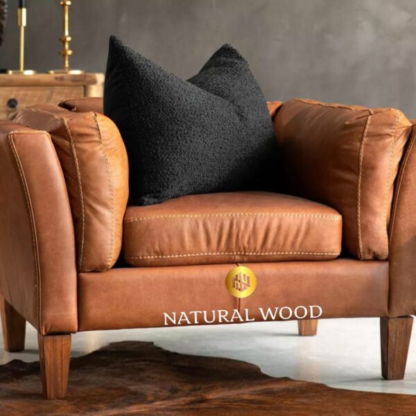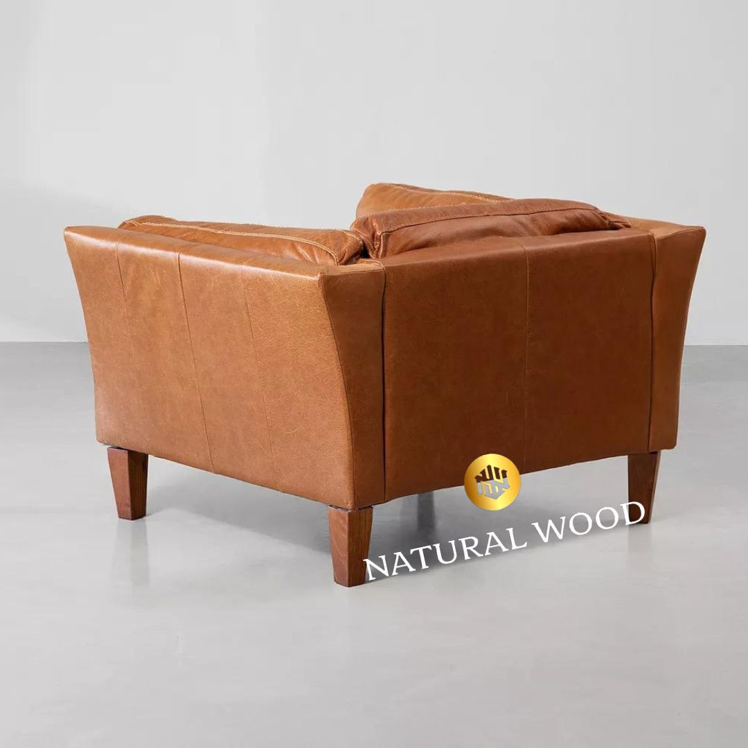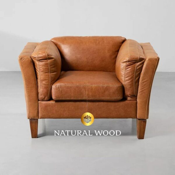 Sofa Single Rangka Kayu Jati Leather Oscar Sentuhan Minimalis untuk Ruang Tamu Modern